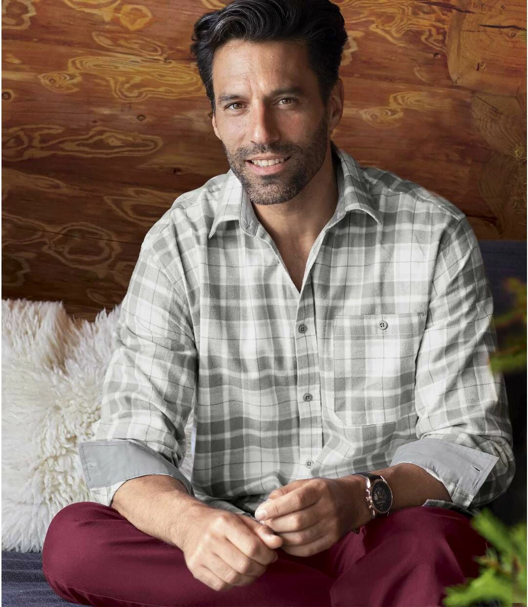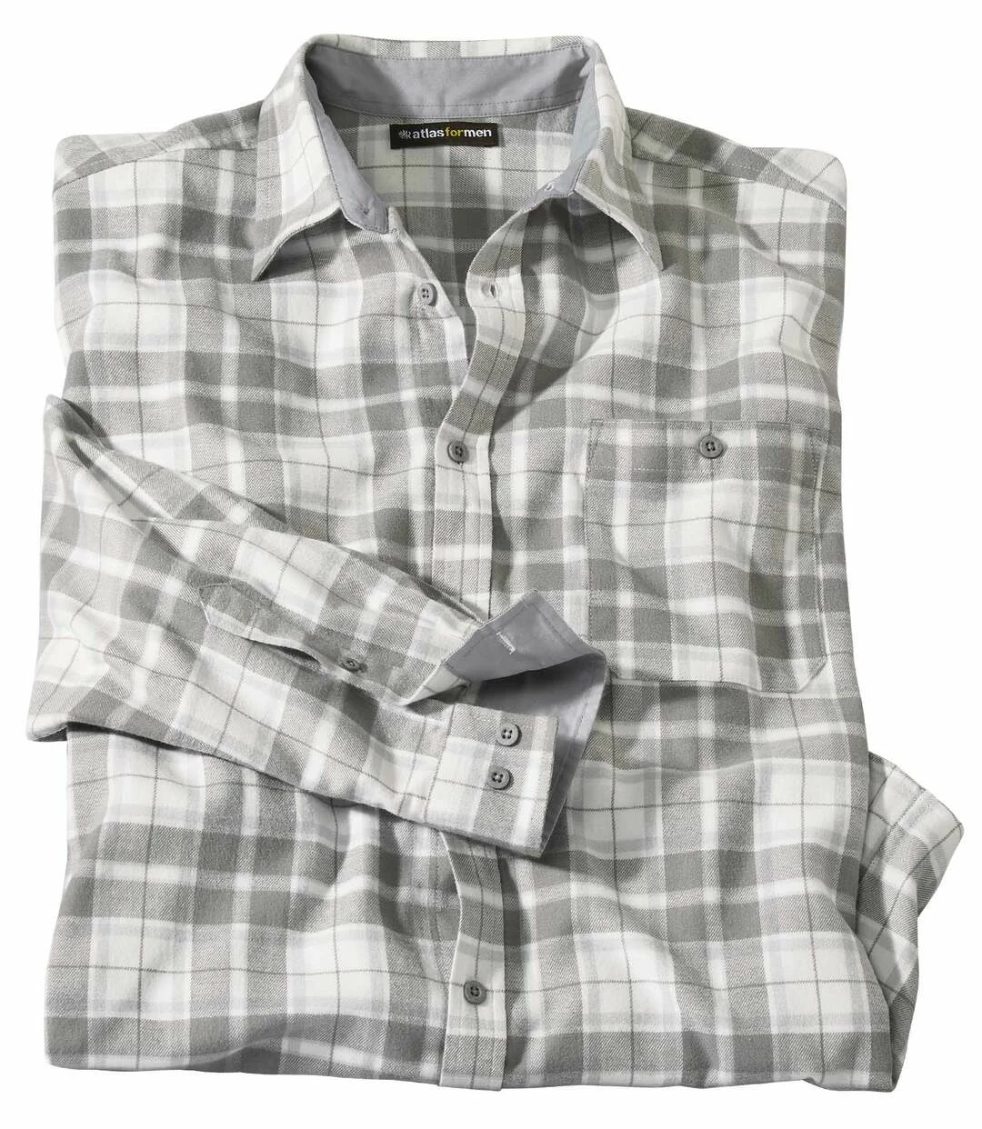 2-farbiges kariertes Flanellhemd: Dieses karierte Hemd aus flauschigem Flanell (ca. 160 g/m²) ist ideal für den Winter. Bei diesem bequemen Modell machen die Manschetten den kleinen Unterschied: Sie sind auf der Innenseite mit einfarbigem dunkelgrauem Popelin abgesetzt. Die Knöpfe sind ebenfalls dunkelgrau. Weiter Schnitt mit Kentkragen, geknöpfter Brusttasche und Knopfmanschetten. Rückenpasse mit 2 Bewegungsfalten und abgerundetem Saum. 100% Baumwolle. Rückenlänge bei Größe L: ca. 81 cm. Maschinenwaschbar bei 30°. Farben: Karos in Grau und Natur – Art.-Nr.: G7121