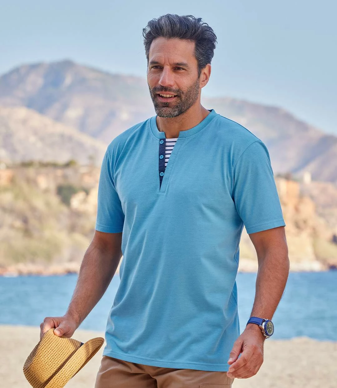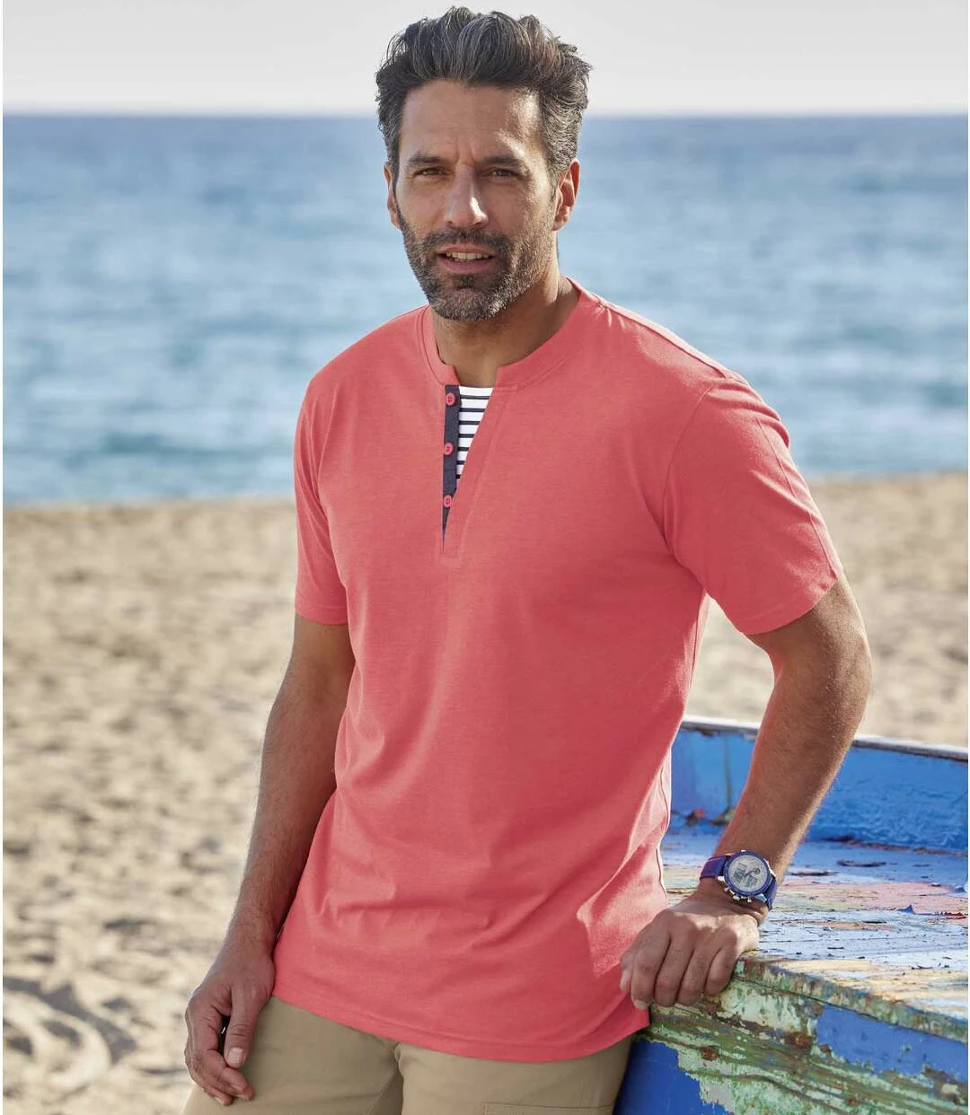 2er-Pack Henleyshirts Marina: Hier kommen 2 lässige T-Shirts für den Strandausflug. Sie haben einen modischen Henleykragen, inkl. kontrastierender Knopfleiste und einem Schmuckeinsatz mit Matrosenstreifen. Freuen Sie sich auf den angenehmen Jersey (ca. 160 g/m²) sowie den weiten Schnitt mit verstärkten Seitenschlitzen. Sorgfältige Verarbeitung: Rippbündchen am Ausschnitt, Nackenband, Ärmel und Saum mit Doppelnähten. 60% Baumwolle, 40% Polyester. Rückenlänge bei Größe L: ca. 74 cm. Maschinenwaschbar bei 30°. Farben: 1 x Blau, 1 x Koralle