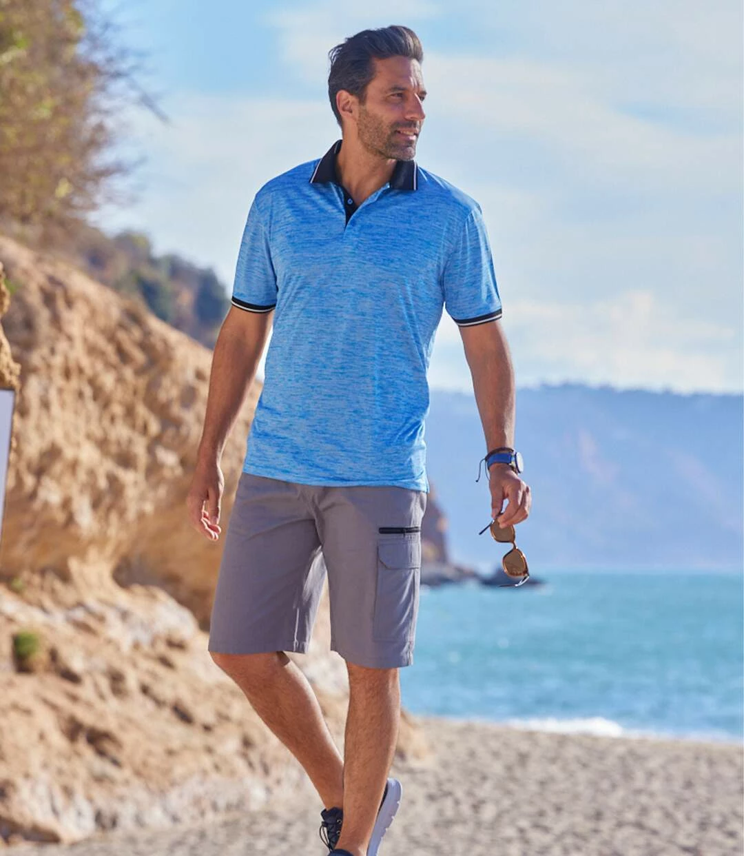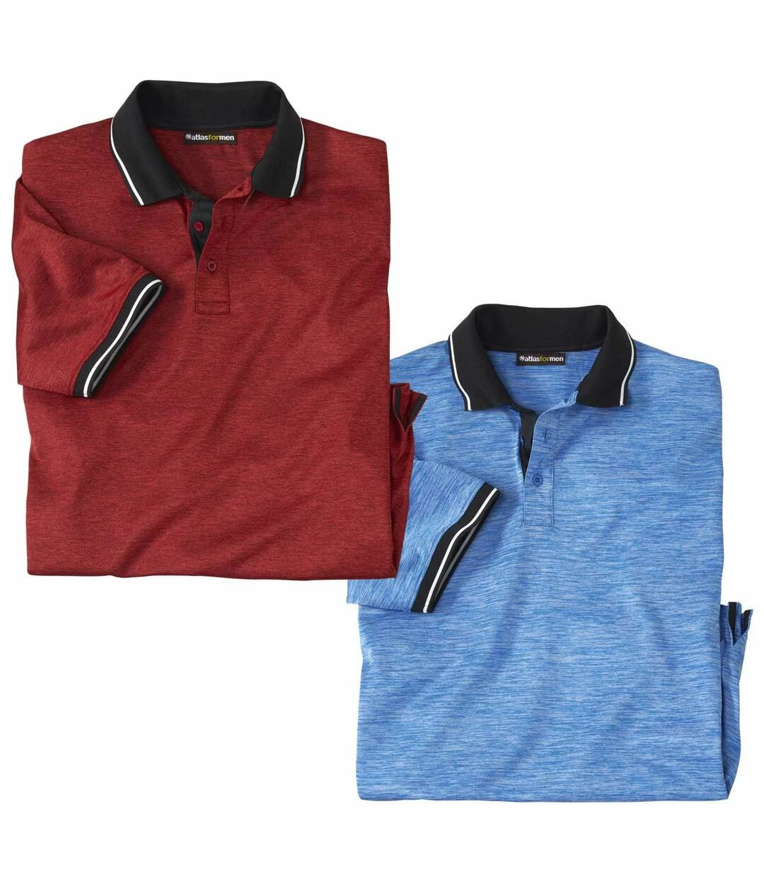 2er-Pack melierte Poloshirts Sport: Der leichte und schnell trocknende geflammte Jersey (ca. 130 g/m²) dieser Poloshirts ist das ideale Material, um die Urlaubsmomente optimal zu genießen! Die Modelle sind sportlich-chic und zugleich total unkompliziert. Sorgfältige Verarbeitung: Gestreifte Rippbündchen an den kurzen Ärmeln und am Kragen, die Unterseite der Knopfleiste und die Verstärkungen der Seitenschlitze sind in Kontrastfarbe abgesetzt. Verarbeitung mit Doppelnähten. 100% Polyester. Rückenlänge bei Größe L: ca. 74 cm. Maschinenwaschbar bei 30°. Schnell trocknend. Bügelfrei. Farben: 1 x Bordeaux meliert, 1 x Blau meliert