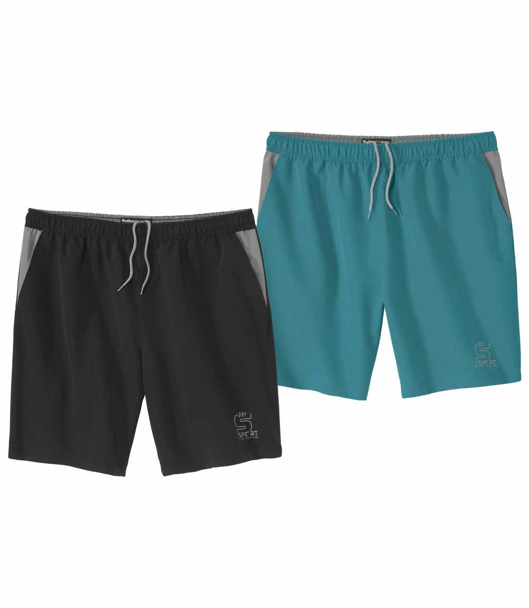 2er-Pack Microfaser-Shorts Sport: Joggen, Sport am Strand oder einfach spazieren gehen… diese Shorts aus leichter Microfaser (ca. 110 g/m²) sind vielseitig einsetzbar! Sie haben 2 Seitentaschen und einen superbequemen Elastikbund mit Verstellkordel. Die Innenseite des Bundes und die Einsätze an den Taschen sind kontrastierend abgesetzt. Kleiner Aufdruck Sport auf dem linken Oberschenkel. 100% Polyester. Schrittlänge bei Größe L: ca. 20 cm, Beinweite: ca. 29 cm. Maschinenwaschbar bei 30°. Bügelfrei. Farben: 1 x Smaragdgrün, 1 x Schwarz.