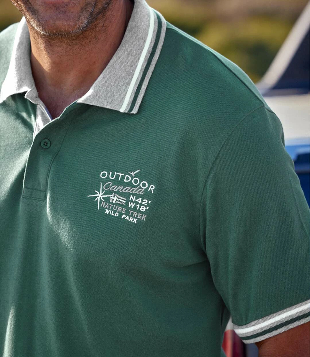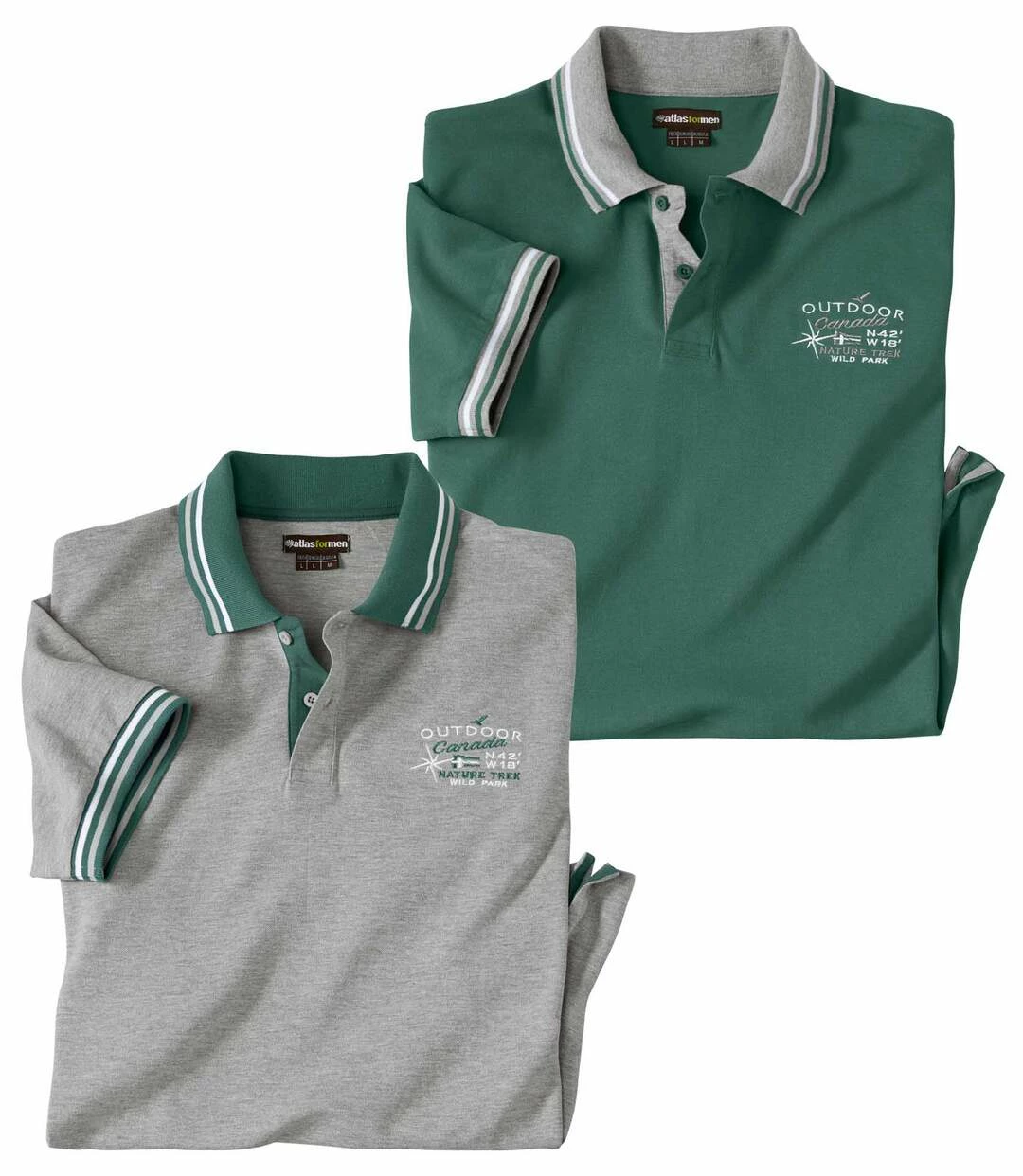 2er-Pack Piquée-Poloshirts Canada: Die traditionelle Piquée-Qualität (ca. 180 g/m²) dieser Poloshirts garantiert perfekten Sitz. Für sportlichen Chic sorgen die Kontrastdetails: schmale Streifen am Kragen und an den Ärmelbündchen, Unterseite der Knopfleiste. Kleine Bruststickerei in Kontrastfarbe. Schöner, bequemer Schnitt mit verstärkten Seitenschlitzen für mehr Tragekomfort. Knöpfe Ton in Ton. Rückenlänge bei Größe L: ca. 74 cm. Maschinenwaschbar bei 30°. Farben: 1 x Grün, 1 x Grau meliert.