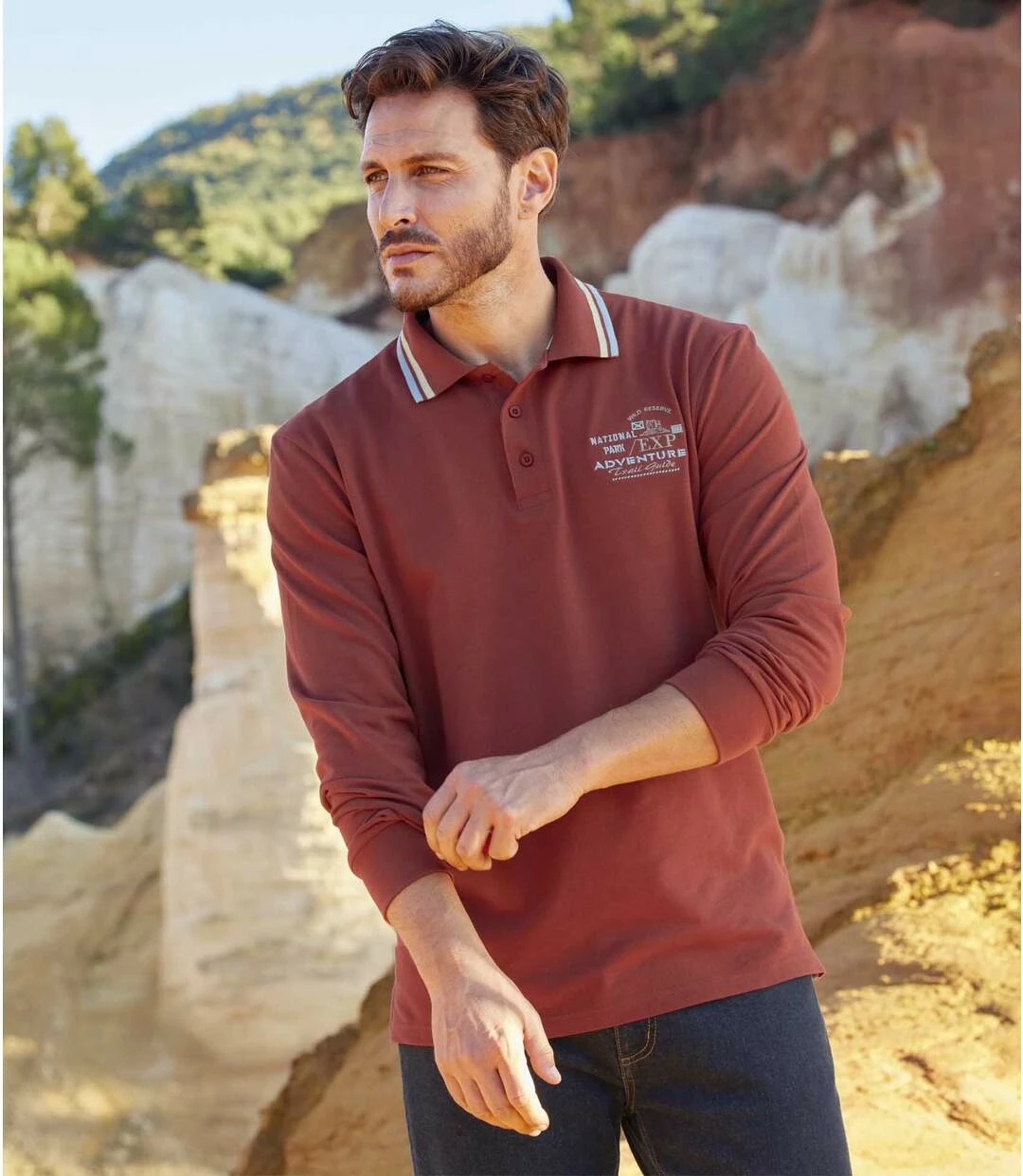 2er-Pack Poloshirts Arizona Adventure in Piqué-Qualität: Den sportiven Chic verdanken diese beiden langärmeligen Poloshirts in herrlicher Piqué-Qualität (ca. 200 g/m²) den schmalen Kontraststreifen am Kragen sowie der exklusiven Bruststickerei. Genießen Sie den Tragekomfort des weiten Schnitts mit Seitenschlitzen, die mit Ripsband verstärkt sind. Sorgfältige Verarbeitung: Nackenband, Ärmel mit Rippbündchen, Saum mit Doppelnähten. 100% Baumwolle. Rückenlänge bei Größe L: ca. 74 cm. Maschinenwaschbar bei 30°. Farben: 1 x Blau, 1 x Ziegelrot – Art.-Nr.: J8120