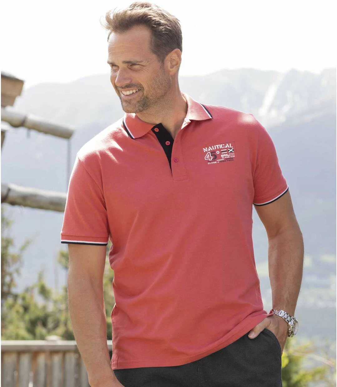 2er-Pack Poloshirts Nautical Sailing: Diese beiden Poloshirts in sommerlichem Korallenrot und elegantem Schwarz begeistern mit Chic und 2 herrlichen Aufdrucken auf der Brust und am Oberarm. Der weiche Jersey (ca. 180 g/m²) zeichnet sich durch exzellente Formstabilität aus. Tolle Kontrastdetails: Nackenband, gestreifte Rippbündchen am Kragen und an den kurzen Ärmeln, Unterseite der Knopfleiste, Ripsband-Verstärkungen der Seitenschlitze. Weiter und bequemer Schnitt, gerader Saum mit Doppelnähten. 100% Baumwolle. Rückenlänge bei Größe L: ca. 74 cm. Maschinenwaschbar bei 30°. Farben: 1 x Koralle, 1 x Schwarz – Art.-Nr.: G2128