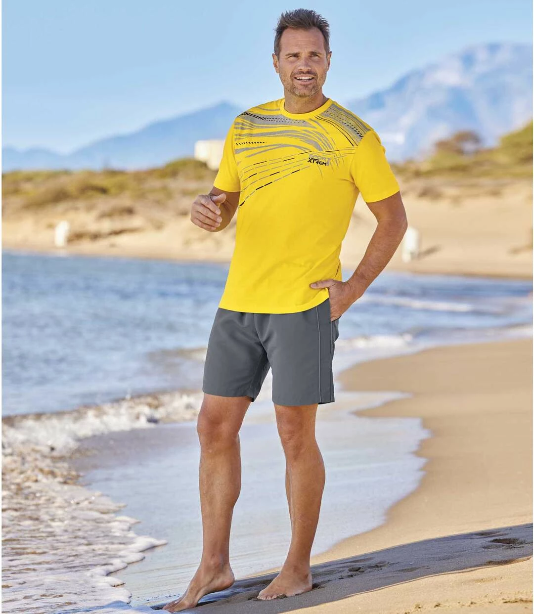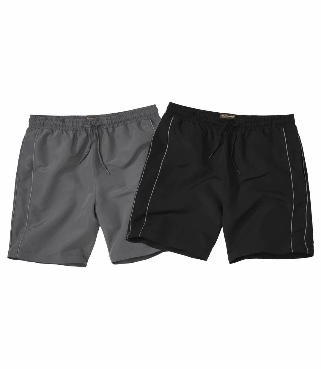 2er-Pack Shorts Beach Sport: Microfaser ist das ideale Material für Action im Sommer, denn sie ist leicht und angenehm. Ein weiterer Vorteil der Microfaser dieser beiden Shorts: sie trocknet schnell! Tragekomfort ist garantiert dank des Elastikbunds mit außenliegender Verstellkordel und der 2 Taschen in den Seitennähten. Jeweils 2 seitliche Zierpaspeln. 100% Polyester. Seitenlänge bei Größe L: ca. 46 cm, Beinweite: ca. 29 cm. Maschinenwaschbar bei 30°. Farben: 1 x Grau, 1 x Schwarz – Art.-Nr.: V5023 50