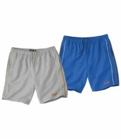 2er-Pack Shorts Running Line aus Microfaser: Komplettieren Sie Ihre Sportausstattung mit diesen Shorts aus Microfaser (ca. 110 g/m²). Sie sind leicht und schnell trocknend und dank des Elastikbunds mit Tunnelzug und innenliegender Verstellkordel tragen sich die Modelle äußerst angenehm. 2 Seitentaschen. Doppelte Dekorstreifen an den Seiten, exklusiver Aufdruck auf dem Oberschenkel. 100% Polyester. Schrittlänge bei Größe L: ca. 20 cm, Beinweite: ca. 29 cm. Maschinenwaschbar bei 30°. Bügelfrei. Farben: 1 x Blau, 1 x Grau – Art.-Nr.: H4137