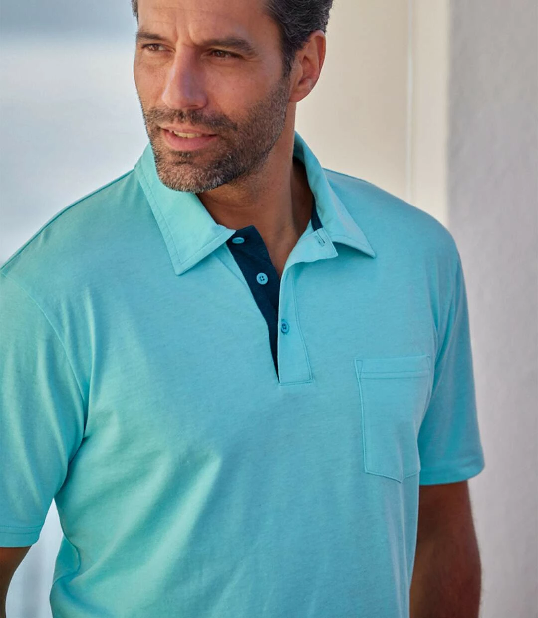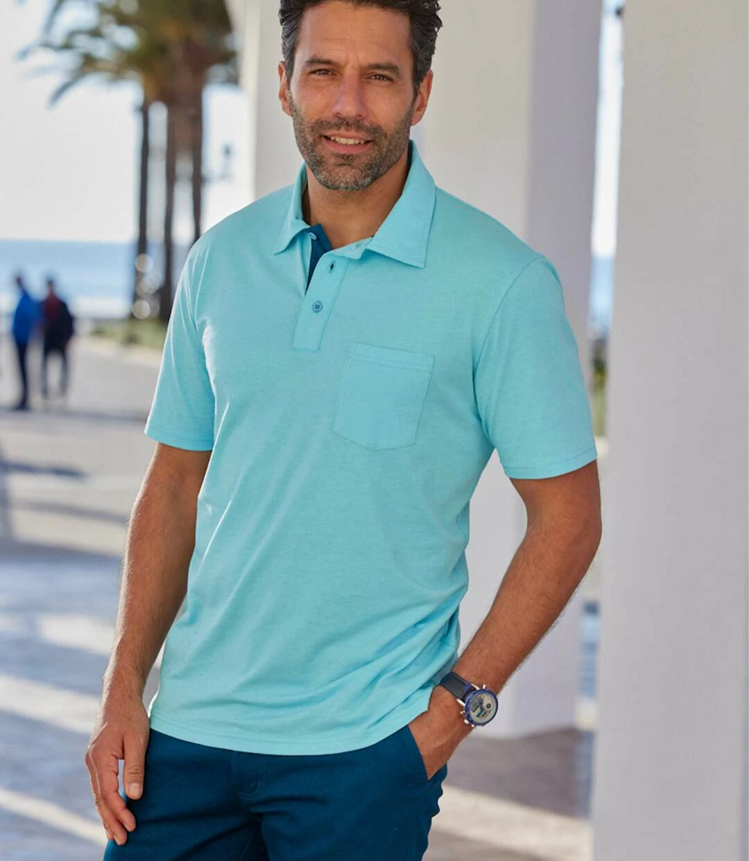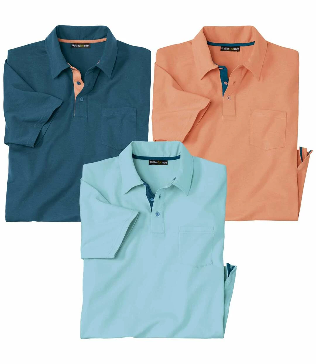 3er-Pack Poloshirts Kykladen: Drei verschiedene Farben, aber immer der gleiche weiche und anschmiegsame Jersey (ca. 160 g/m²). Genießen Sie den Tragekomfort dieser Modelle mit Kentkragen, Knopfleiste mit 3 Knöpfen Ton in Ton und einer aufgesetzten Brusttasche. Saum mit Seitenschlitzen für noch mehr Wohlbefinden. Kontrastdetails: Unterseite der Knopfleiste, Nackenband, Seitenschlitze. Kurze Ärmel und gerader Saum mit Doppelnähten. 60% Baumwolle, 40% Polyester. Rückenlänge bei Größe L: ca. 74 cm. Maschinenwaschbar bei 30°. Farben: 1 x Petrolblau, 1 x Türkis, 1 x Melone