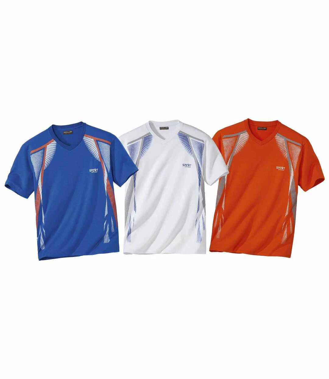 3er-Pack T-Shirts mit graphischem Design: Ob für das sportliche Training oder den Wanderausflug am Wochenende – diese knitterfreien T-Shirts sind ideal für Männer, die Spaß an der Bewegung haben! Das graphische Design und der V-Ausschnitt mit Rippbündchen sorgen optisch für einen dynamischen Auftritt! Der leicht fließende Jersey (ca. 160 g/m2) trägt sich ausgesprochen angenehm! Kurze Ärmel und Saum mit Doppelnähten. 100% Baumwolle. Rückenlänge bei Größe L: ca. 74 cm. Maschinenwaschbar bei 30°. Farben: 1 x Weiß, 1 x Blau, 1 x Orange – Art.-Nr.: C9141