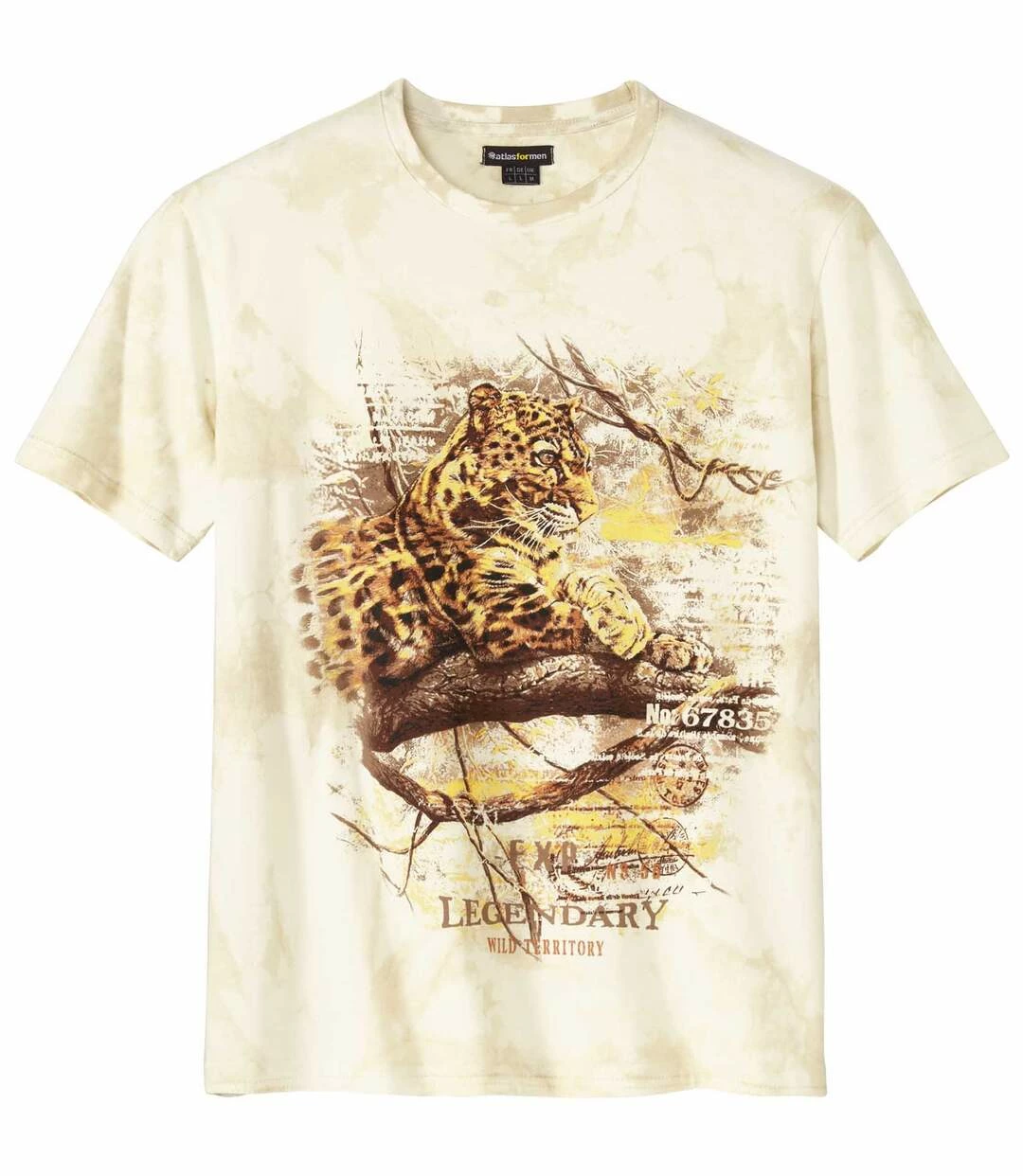 Batik-T-Shirt Panther: Wenn Sie die ausgetretenen Pfade nicht nur modisch verlassen möchten, dann ist dieses T-Shirt im Batiklook mit dem aufgedruckten Panther-Motiv genau das Richtige! Das stylische Modell mit kurzen Ärmeln und Rundhalsausschnitt wird aus weicher und anschmiegsamer Baumwolle (ca. 160 g/m²) hergestellt. Klassische Verarbeitung: Rundhalsausschnitt mit Rippbündchen, Ärmel und Saum mit Doppelnähten. Rückenlänge bei Größe L: ca. 74 cm. Maschinenwaschbar bei 30°. Auf Links bügeln wegen des Aufdrucks. Farbe: Beige.