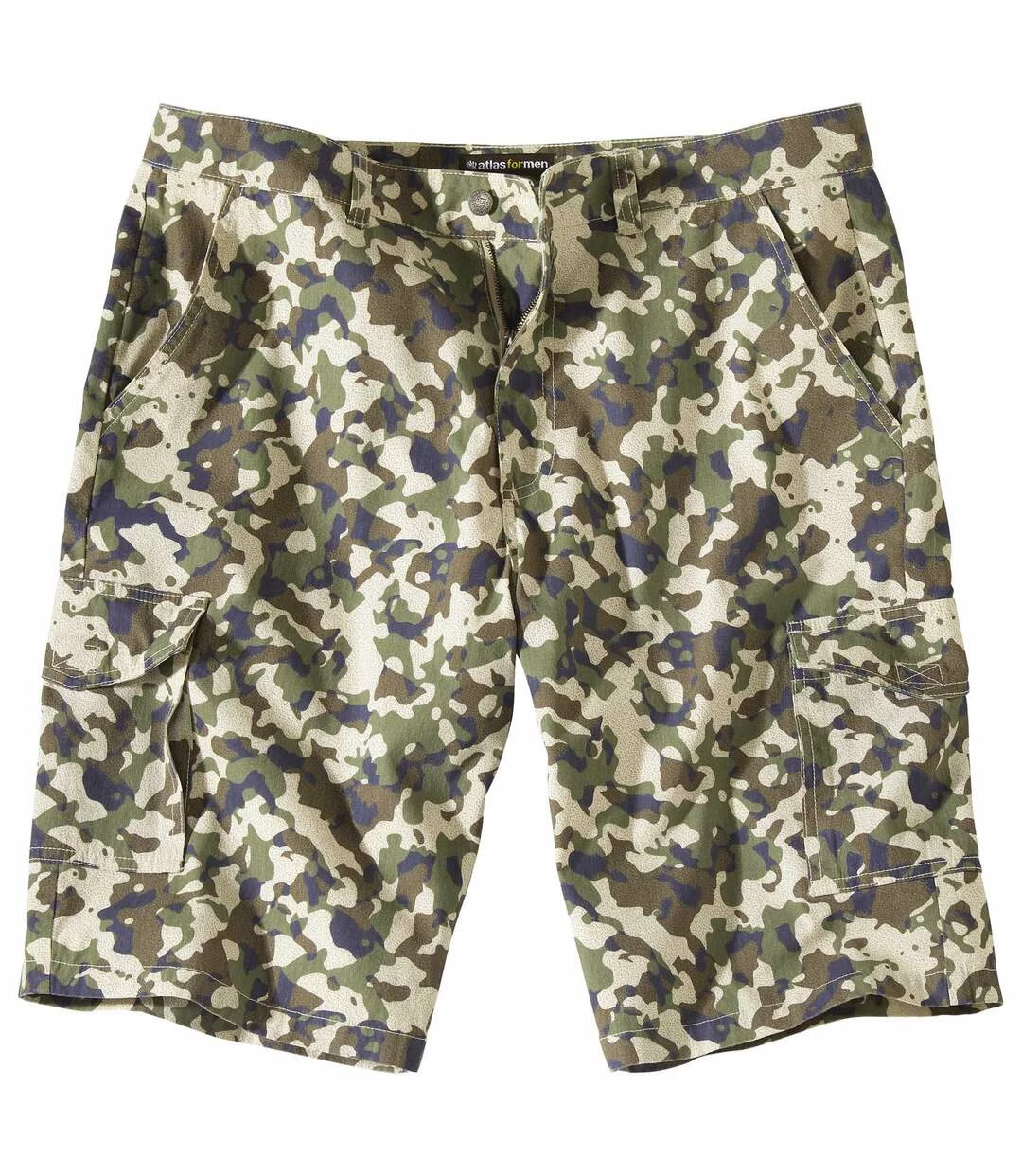 Camouflage-Bermuda Adventure im Cargo-Stil: Wenn im Urlaub Action angesagt ist, dann kommt diese Bermuda aus Canvas (ca. 200 g/m²) mit Camouflage-Print zum Einsatz! Bequemer und praktischer Schnitt dank Bund mit Schlaufen und 6 Taschen: 2 Einstecktaschen und 2 Beintaschen mit Dehnfalte und Klettklappe und 2 aufgesetzte Gesäßtaschen. Verdeckter RV mit Abschlussknopf aus Metall. 100% Baumwolle. Schrittlänge bei Größe 50: ca. 32 cm. Beinweite: ca. 28 cm. Maschinenwaschbar bei 30°. Farbe: Camouflage-Muster – Art.-Nr.: K0122