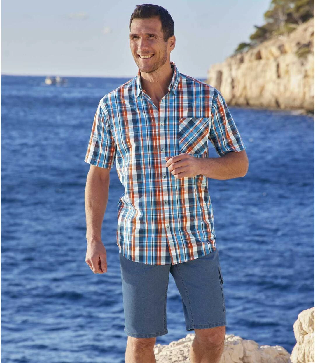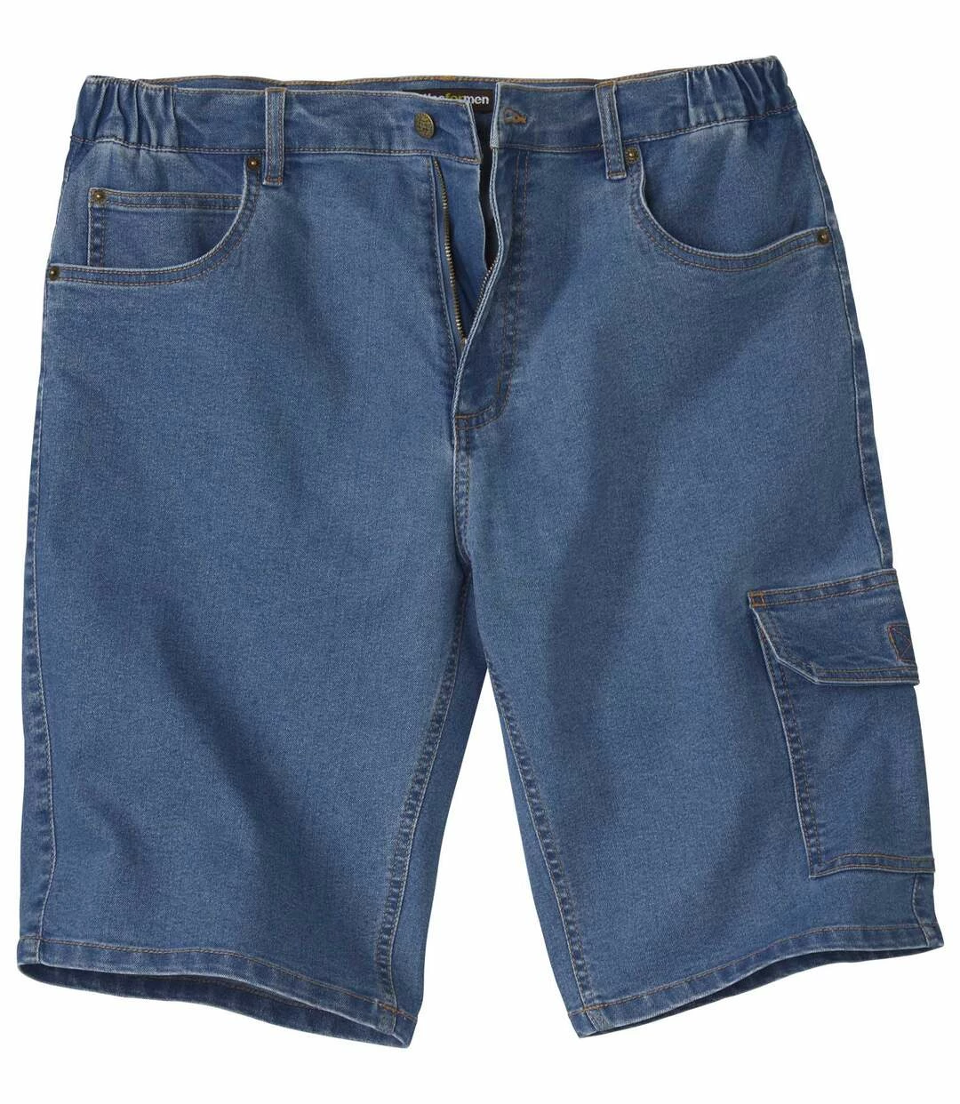 Cargo-Bermuda aus Stretch-Denim: Diese Bermuda aus leichtem Stretch-Denim (9,5 oz) sollte bereit liegen, wenn die ersten warmem Tage angesagt sind! Das praktische und bequeme Modell hat 6 Taschen mit Doppelnähten: 2 Einstecktaschen und 1 Münztasche mit Nieten und 1 Cargo-Tasche mit Klettklappe und 2 aufgesetzte Gesäßtaschen. Für optimalen Tragekomfort sorgt der Bund mit seitlichen Dehneinsätzen. RV mit Abschlussknopf aus Metall, Nähte in Kontrastfarbe. 72% Baumwolle, 27% Polyester, 1% Elasthan. Schrittlänge bei Größe L: ca. 30 cm, Beinweite: ca. 26 cm. Maschinenwaschbar bei 30°. Farbe: Hellblau
