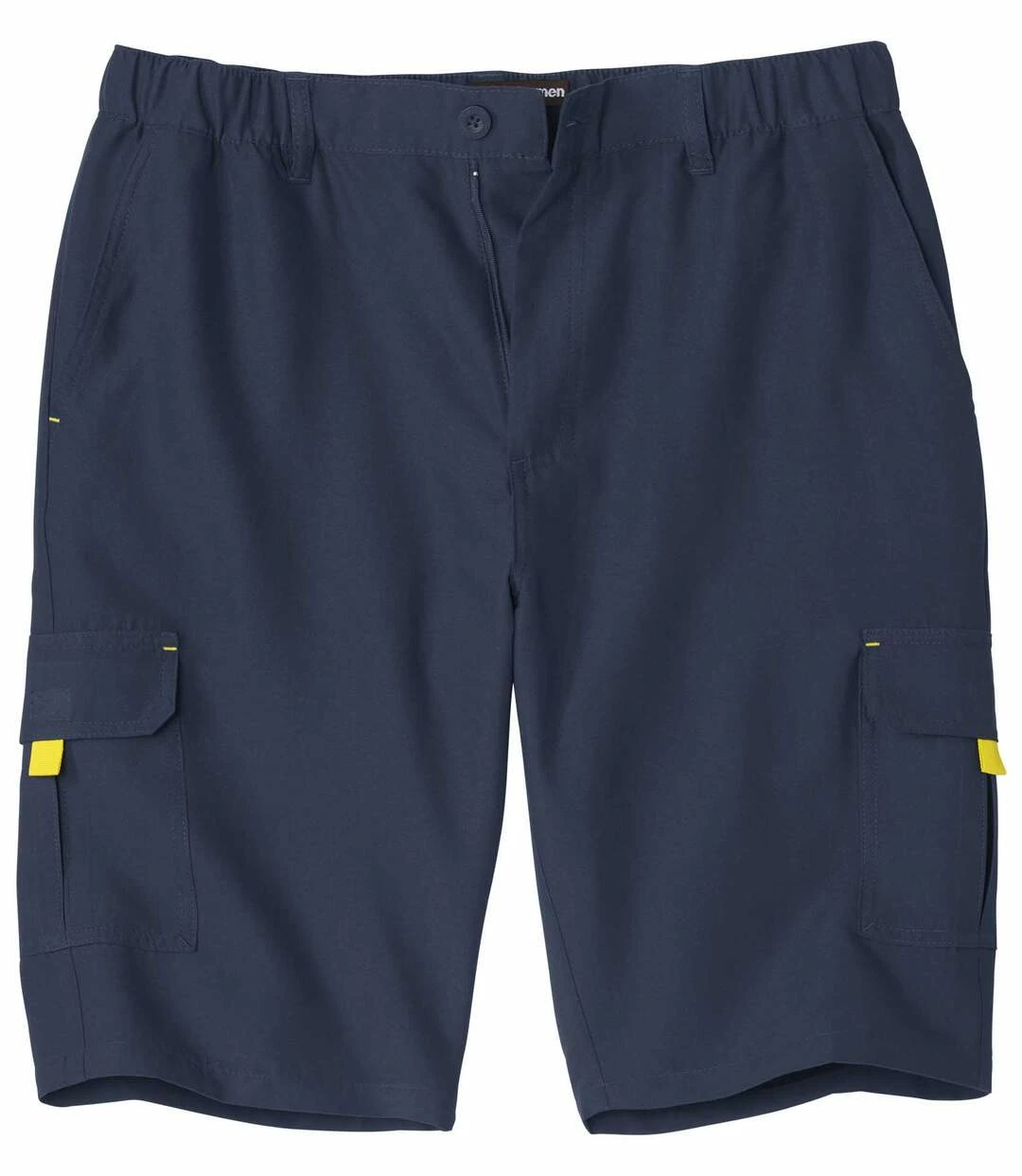 Cargo-Bermuda Entspannung aus Microfaser: Für den Sport und die Freizeit empfehlen wir Ihnen diese Bermuda aus pfirsichweicher Microfaser (ca. 110 g/m²), die leicht, anschmiegsam und pflegeleicht ist. Bequemer zu 3/4 elastischer Bund mit RV und Abschlussknopf aus Metall. Die Hose hat 5 praktische Taschen: 2 seitliche Einstecktaschen, 2 Cargo-Taschen mit Dehnfalte und Klettklappe und 1 Gesäßtasche mit Klettverschluss. Kontrastdetails: Ziernähte, Ripsband an der Tasche. 100% Polyester. Schrittlänge bei Größe L: ca. 30 cm, Beinweite: ca. 26 cm. Maschinenwaschbar bei 30°. Farbe: Dunkelblau