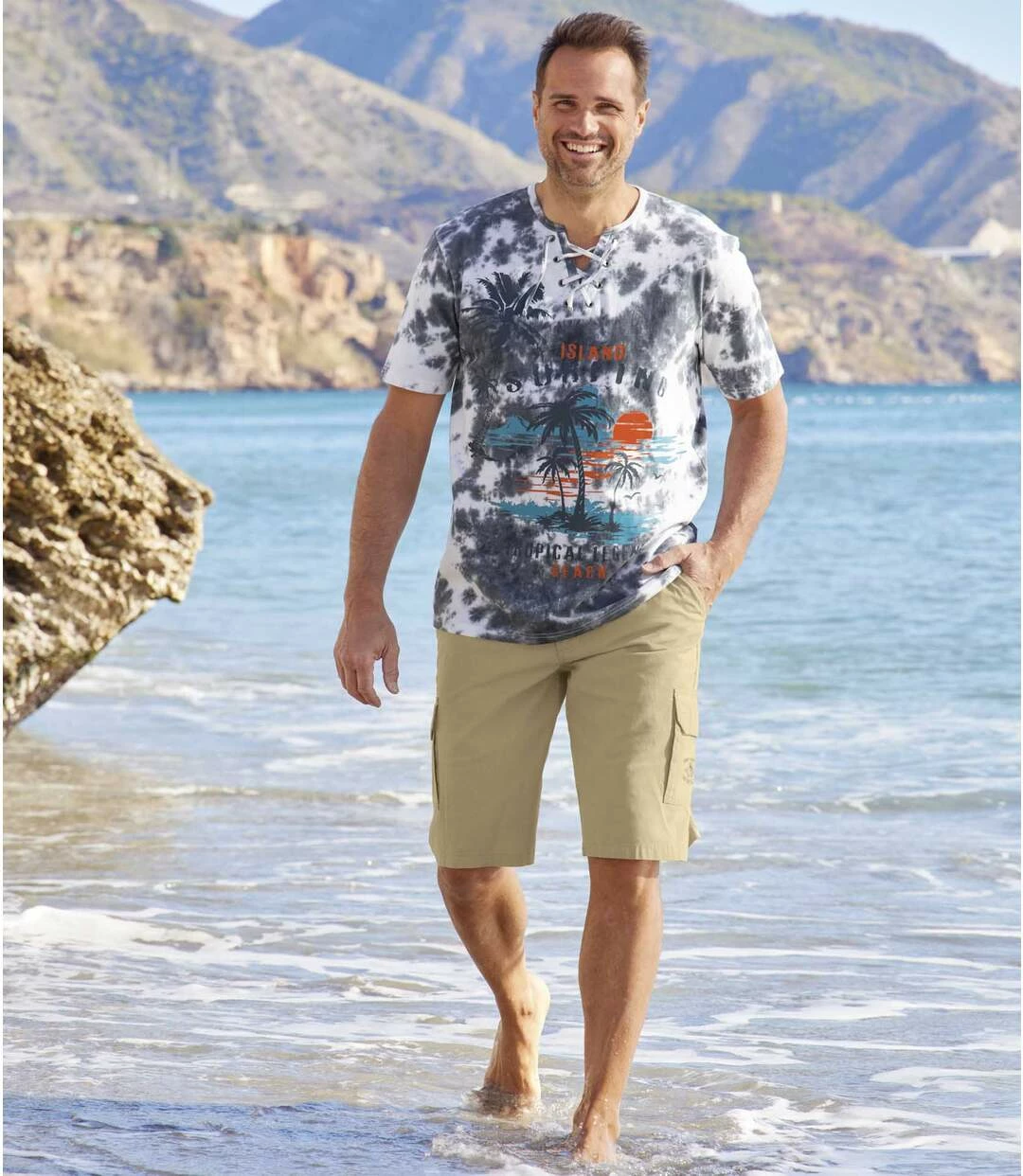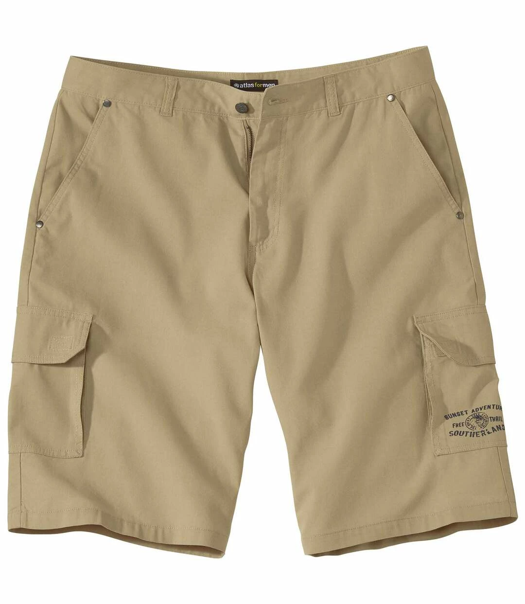 Cargo-Bermuda Free Trail aus Microcanvas: Dank der beigen Farbe lässt sich diese lässige Bermuda problemlos mit Ihren Sommer-Outfits kombinieren. Sie ist aus strapazierfähigem Microcanvas (ca. 160 g/m²) und hat 6 Taschen: 2 Einstecktaschen mit Nieten und 2 paspelierte Gesäßtaschen mit Klettklappen und 2 Cargo-Taschen mit Dehnfalten und Klettklappen. Bund mit Schlaufen, verdeckter RV mit Abschlussknopf aus Metall. Kleiner Aufdruck auf der linken Beintasche. 100% Baumwolle. Schrittlänge bei Größe 50: ca. 32 cm. Beinweite: ca. 28 cm. Maschinenwaschbar bei 30°. Farbe: Beige – Art.-Nr.: K0133