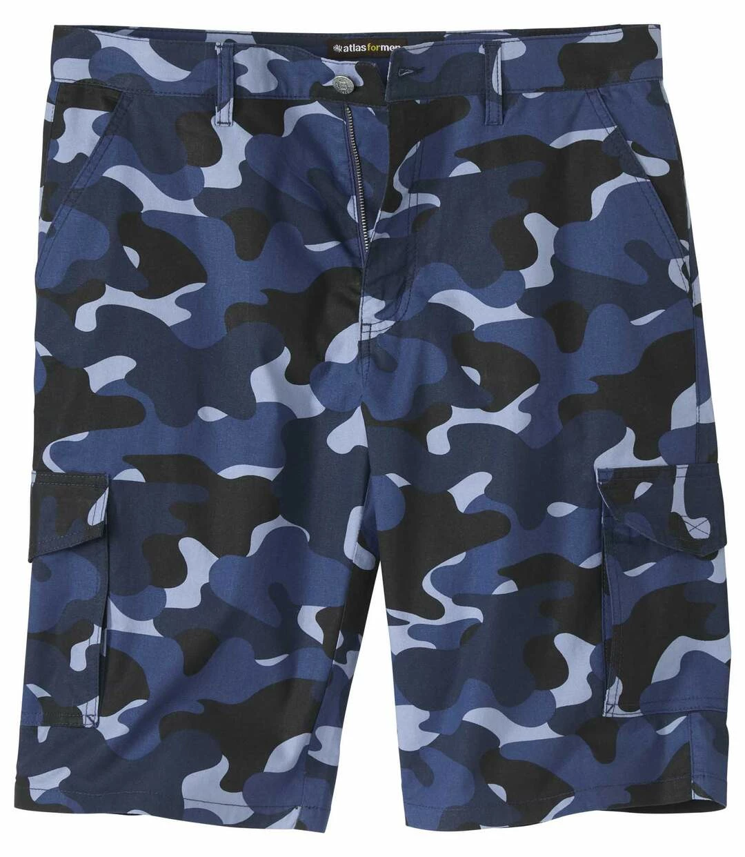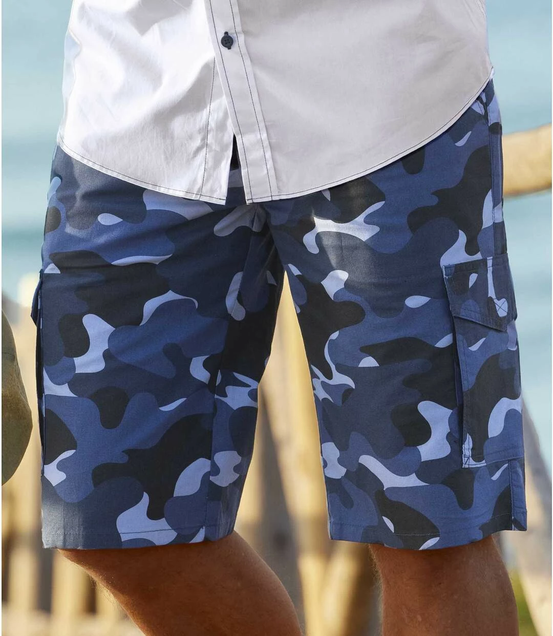 Cargo-Bermuda im Camouflage-Print: Der Camouflage-Print dieser Bermuda sorgt für Abenteurer-Look! Sie wird aus leichtem, aber dennoch strapazierfähigem Canvas (ca. 160 g/m²) hergestellt. Diese robuste Action-Bermuda verfügt über 6 praktische Taschen: 2 Cargo-Taschen mit Klettklappen und 2 Einstecktaschen vorne und 2 aufgesetzte Gesäßtaschen. Klassische Verarbeitung: Bund mit Schlaufen, RV und Abschlussknopf aus Metall. 100% Baumwolle. Schrittlänge bei Größe 50: ca. 32 cm, Beinweite: ca. 28 cm. Maschinenwaschbar bei 30°. Farben: Blau mit Camouflage-Motiv.