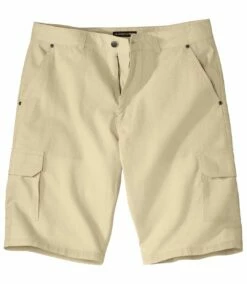 Cargo-Bermuda Menorca: Dank des leichten Canvas (ca. 160 g/m²) und der beigen Farbe ist diese praktische Cargo-Bermuda im Sommer universell einsetzbar! Sie hat insgesamt 6 praktische Taschen: 2 Einstecktaschen mit Nieten vorne, 2 Cargo-Taschen mit Dehnfalten und Klettklappen und 2 paspelierte Gesäßtaschen. Ein sehr angenehm zu tragendes, sommerliches Modell. Bund mit Schlaufen. RV mit Abschlussknopf aus Metall. 100% Baumwolle. Schrittlänge bei Größe 50: ca. 32 cm, Beinweite: ca. 28 cm. Maschinenwaschbar bei 30°. Farbe: Beige – Art.-Nr.: K1148