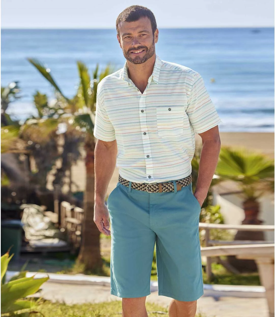 Chino-Bermuda aus Stretch-Twill: Diesen Sommer geht nichts ohne eine Bermuda! Dieses Modell aus solidem Stretch-Twill (ca. 250 g/m²) begeistert mit absolutem Casual-Chic! Perfekter Schnitt inkl. Bund mit Schlaufen, 2 Einstecktaschen vorne und 1 paspelierten Gesäßtasche mit Verschlussknopf. Reißverschluss mit Abschlussknopf Ton in Ton. 98% Baumwolle, 2% Elasthan. Schrittlänge bei Größe 50: ca. 32 cm, Beinweite: ca. 28 cm. Maschinenwaschbar bei 30°. Farbe: Entengrün.