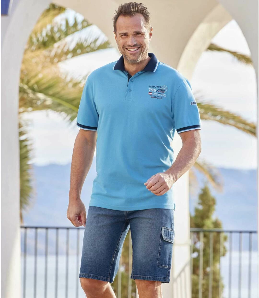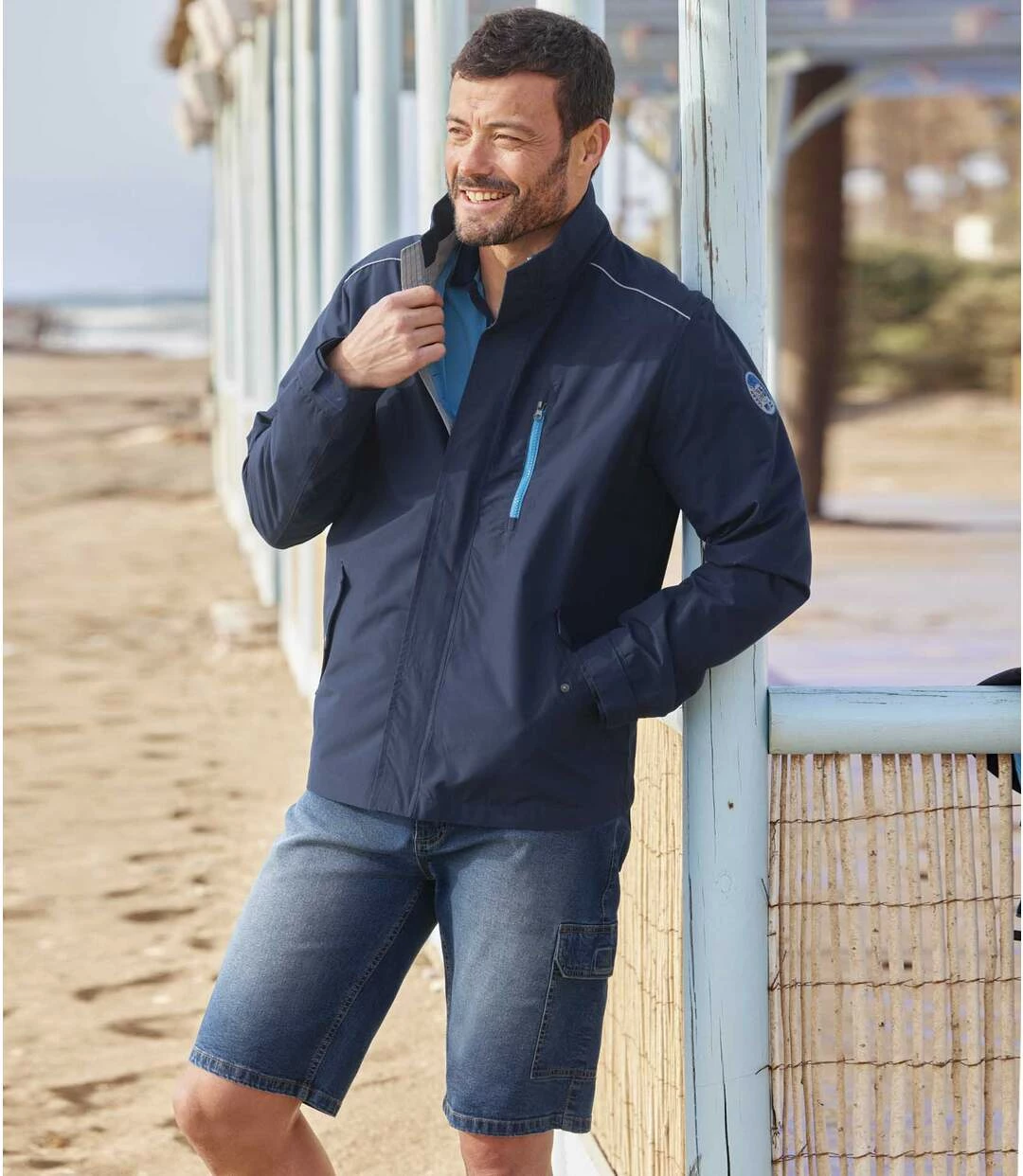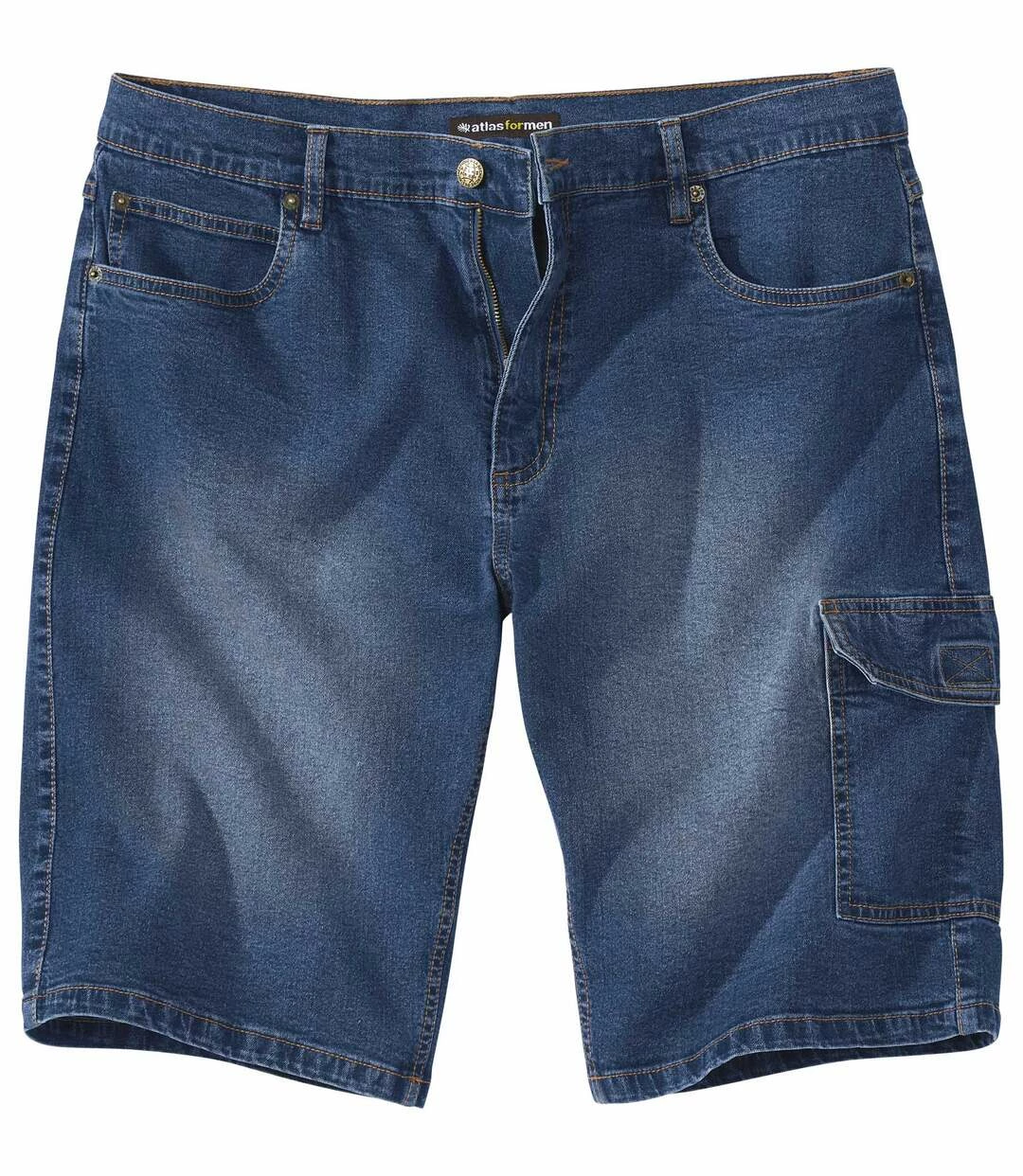 Denim-Bermuda Cargo: Diese Bermuda im Jeans-Look muss einfach mit in den Urlaub! Das Modell aus leichtem Denim (8,5 oz) ist anschmiegsam und sehr strapazierfähig. Der Bund mit Schlaufen wird mit einem RV inkl. Abschlussknopf aus Metall verschlossen. 6 praktische Taschen: 2 Einstecktaschen und 1 Münztasche mit Nieten vorne und 2 aufgesetzte Gesäßtaschen und 1 Cargo-Tasche mit Klettklappe. 98% Baumwolle, 2% Elasthan. Schrittlänge bei Größe 50: ca. 30 cm, Beinweite: ca. 26 cm. Maschinenwaschbar bei 30°. Farbe: Blau – Art.-Nr.: K1116