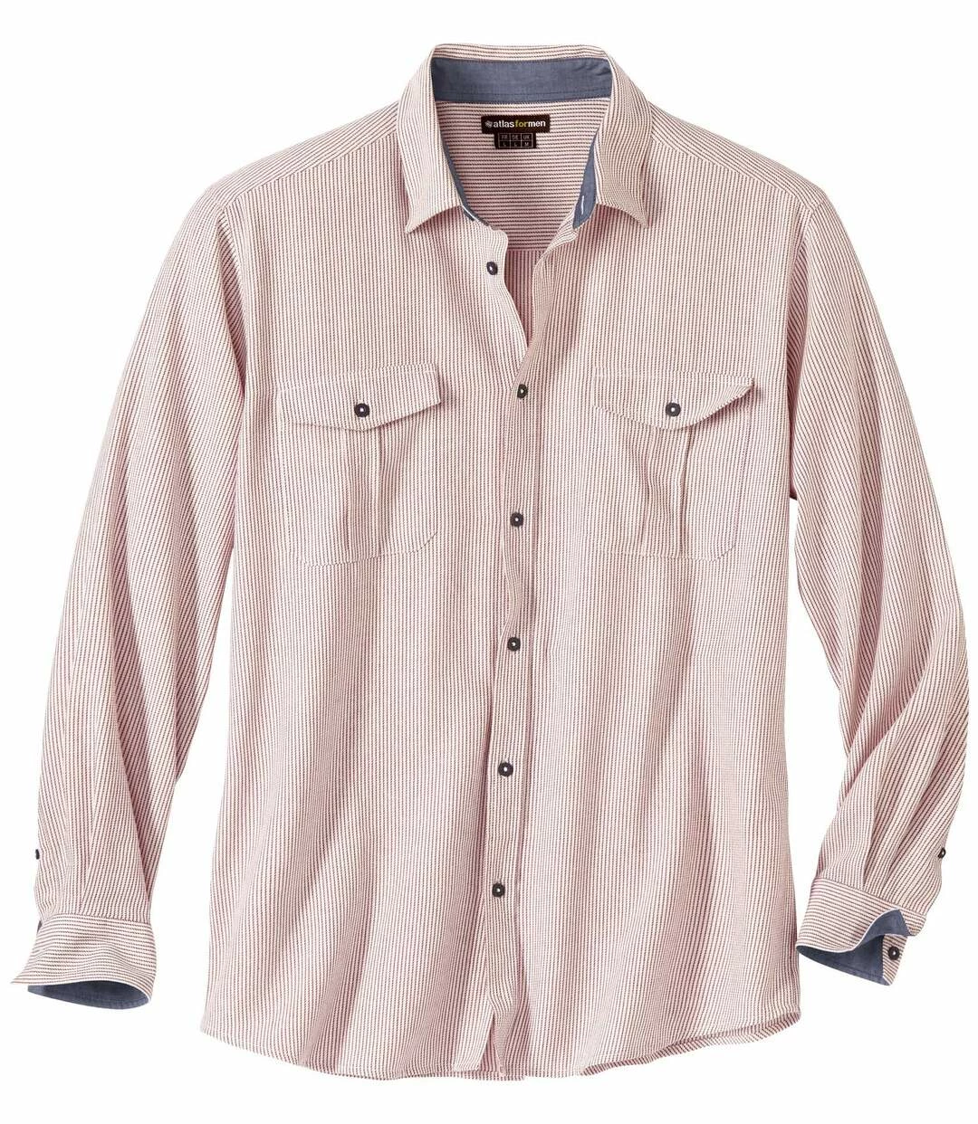 Fein gestreiftes Hemd mit Chambray-Details: Dieses langärmelige Hemd mit modischen Webstreifen wird aus weicher und anschmiegsamer Baumwolle (ca. 150 g/m²) gefertigt und überzeugt mit stylischen Details. Es hat 2 Brusttaschen mit Knopfklappen und ist auf den Innenseiten des Kragens und der Manschetten mit einfarbigem Chambray abgesetzt, das ergibt einen tollen Effekt, wenn Sie die Ärmel hochkrempeln. Einwandfreie Verarbeitung: Kentkragen, Knopfmanschetten, weiter Schnitt mit 2 Bewegungsfalten im Rücken, abgerundeter Saum. Rückenlänge bei Größe L: ca. 81 cm. Maschinenwaschbar bei 30°. Farbe: Streifen in Bordeaux und Weiß.