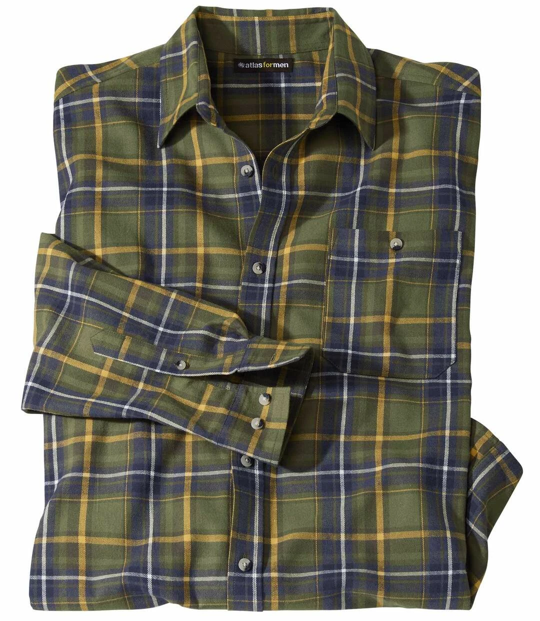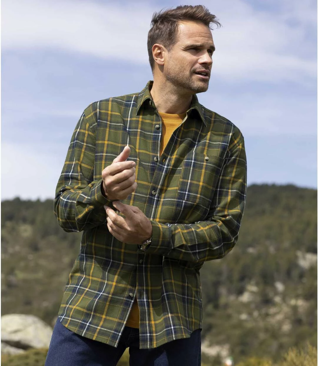 Flanellhemd Forest: Lassen Sie sich von der sanften Wärme dieses Modells aus flauschigem Flanell (ca. 160 g/m²) mit Webkaros verwöhnen! Sie können das Hemd im Herbst und Winter je nach Temperatur direkt auf der Haut tragen oder über einem T-Shirt. Weiter und bequemer Schnitt mit sorgfältiger Verarbeitung: Kentkragen und Knopfmanschetten, aufgesetzte Brusttasche, 2 Bewegungsfalten im Rücken und abgerundeter Saum. Knöpfe in Hornoptik. 100% Baumwolle. Rückenlänge bei Größe L: ca. 81 cm. Maschinenwaschbar bei 30°. Farben: Karos in Grün, Gelb und Blau – Art.-Nr.: J3108