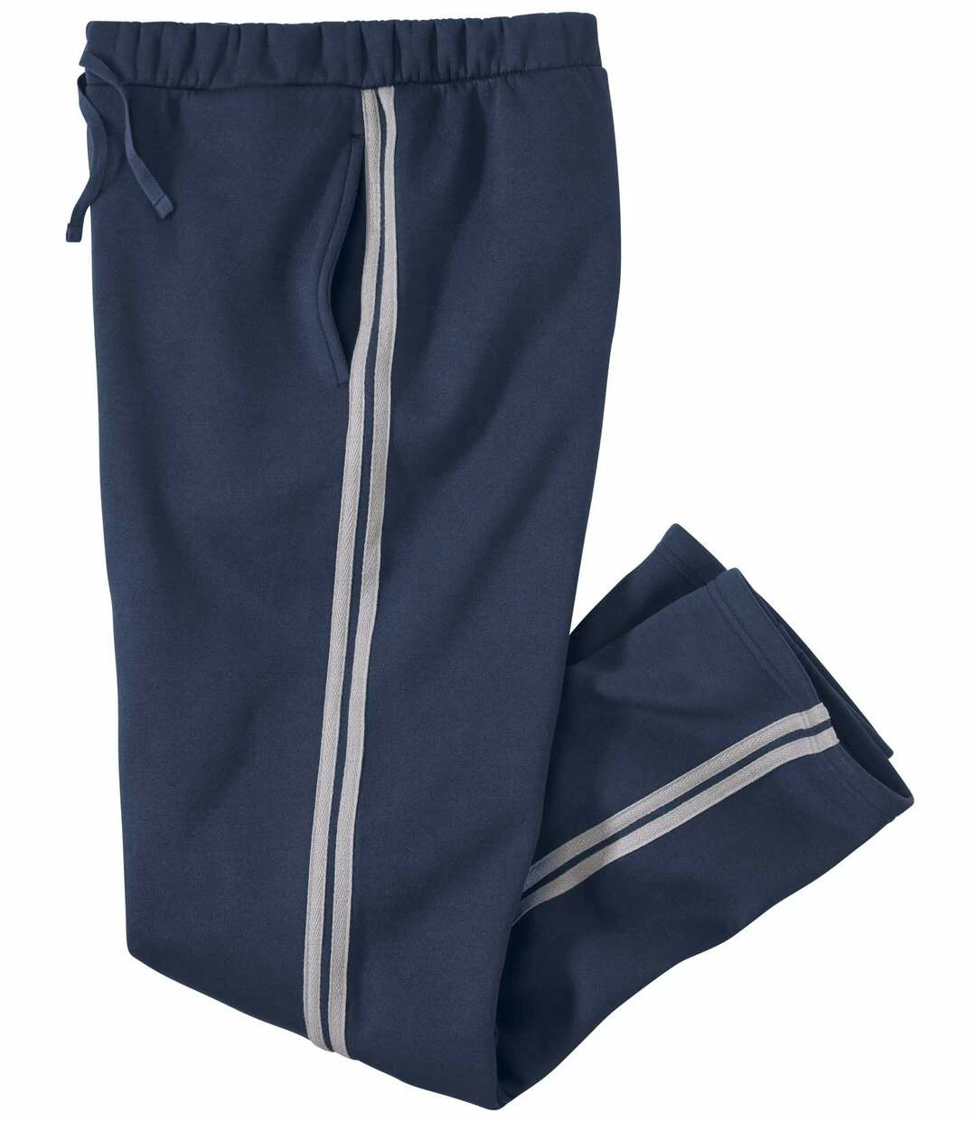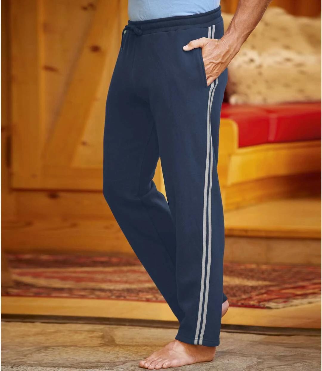 Freizeit-Hose Sport und Relax aus Molton: Ob beim Sport oder in Ihrer Freizeit, in dieser Hose aus sehr weichem, innen angerautem Molton (ca. 265 g/m²) werden Sie sich wohlfühlen. Umso mehr, da diese Schlupfhose dank des Elastikbunds inkl. außenliegender Verstellkordel mit herrlichem Tragekomfort verwöhnt. 2 Taschen in den Seitennähten. Doppelte seitliche Kontrastbänder im typischen Sportswear-Look. Verarbeitung mit Doppelnähten. 100% Polyester. Schritt-länge: ca. 81 cm, Fußweite: ca. 21 cm. Maschinenwaschbar bei 30°. Farbe: Dunkelblau – Art.-Nr.: K9156