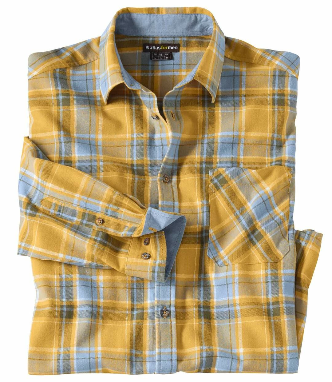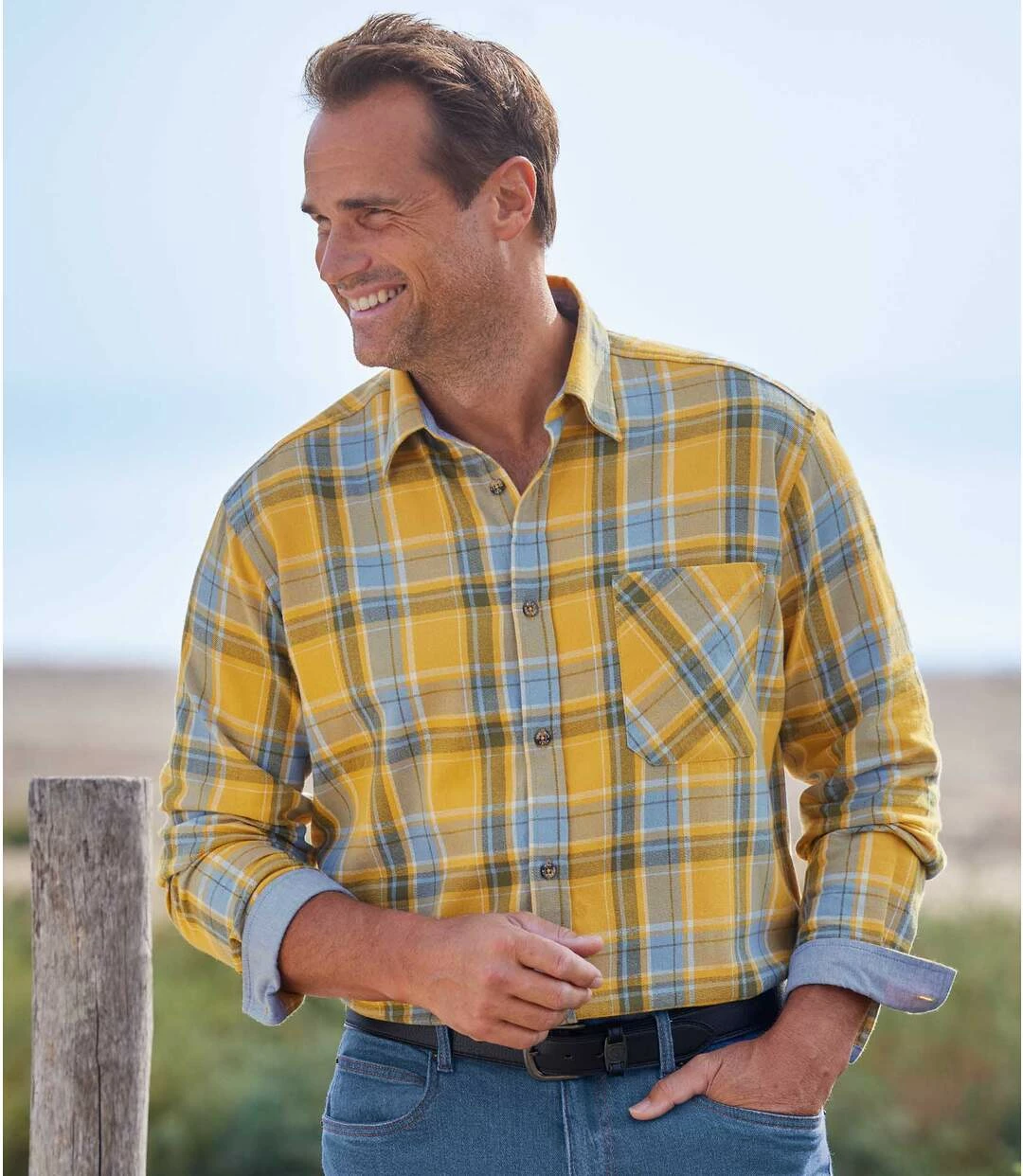 Gelbes Flanellhemd mit Karomuster: Die Webkaros in sonnigen Farben und der flauschige Flanell (ca. 160 g/m²) wärmen Körper und Seele. Für lässigen Stil sorgen Akzente aus himmelblauem Chambray auf den Innenseiten des Kragens und der Manschetten. Schöner Schnitt, sorgfältige Verarbeitung: Kentkragen und Knopfmanschetten, 1 aufgesetzte Brusttasche, Rückenpasse mit 2 Bewegungsfalten, abgerundeter Saum. Knöpfe in Hornoptik. Rückenlänge bei Größe L: ca. 81 cm. Maschinenwaschbar bei 30°. Farben: Gelb mit himmelblauen Karos.