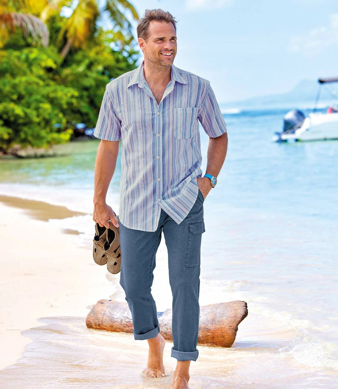 „Gestreiftes Hemd aus Waffel-Krepp:“ Für den Sommer gibt’s nichts Angenehmeres als dieses kurzärmelige Hemd aus luftig-frischem Waffel- Krepp (ca. 110 g / m²). Die Webstreifen in Pastelltönen verleihen dem Modell seinen ausgesprochen sommerlichen Look – ideal für den Urlaub. Lässiger Schnitt: Kentkragen, naturfarbene Knöpfe, aufgesetzte Brusttasche. Rückenpasse mit 2 Bewegungsfalten und abgerundetem Saum. 55% Baumwolle, 45% Polyester. Rückenlänge bei Größe L: ca. 80 cm. Maschinenwaschbar bei 30°. Bügelfrei. Farben: Blau, Weiß, Rosa, Art.Nr.: H7163