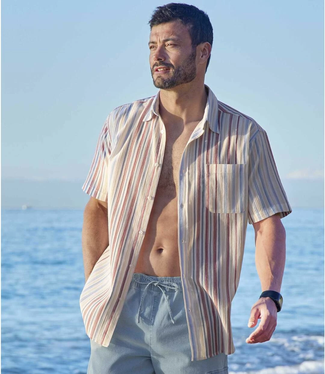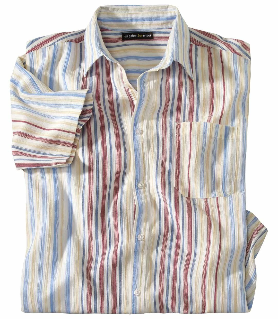 Gestreiftes Hemd Summer aus Krepp-Stoff: Leicht, weich und nahezu knitterfrei – Krepp-Stoff trägt sich nicht nur sehr angenehm, er ist zudem unkompliziert und pflegleicht! Zum sommerlichen Tragegefühl passen die frischen Farben der Webstreifen perfekt! Weiter Schnitt mit 2 Bewegungsfalten im Rücken und abgerundetem Saum. Kentkragen, 1 Brusttasche. 60% Baumwolle, 40% Polyester. Rückenlänge bei Größe L: ca. 80 cm. Maschinenwaschbar bei 30°. Bügelfrei. Farben: Natur mit bunten Streifen – Art.-Nr.: K2142