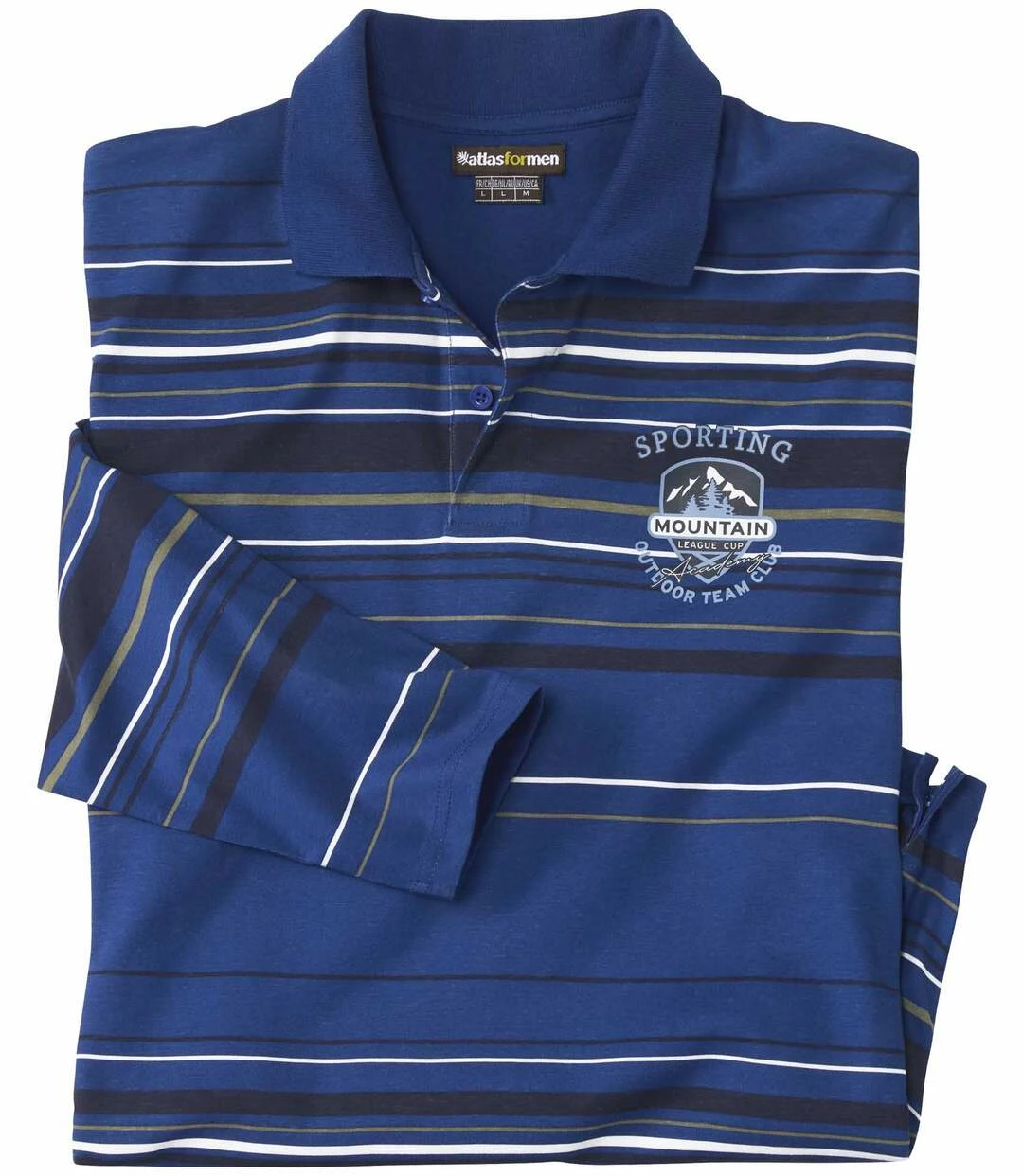 Gestreiftes Poloshirt Sporting Mountain: Dieses sportliche Poloshirt verwöhnt mit weicher, reiner Baumwolle (ca. 180 g/m²). Perfekter Schnitt: klassischer Polokragen inkl. Rippbündchen, Knopfleiste mit 2 Knöpfen Ton in Ton, Seitenschlitze am Saum für mehr Tragekomfort. Hübsches Detail: modischer Brustaufdruck. Lange Ärmel und Saum mit Doppelnähten. Rückenlänge bei Größe L: ca. 74 cm. Maschinenwaschbar bei 30°. Farbe: Blau gestreift.