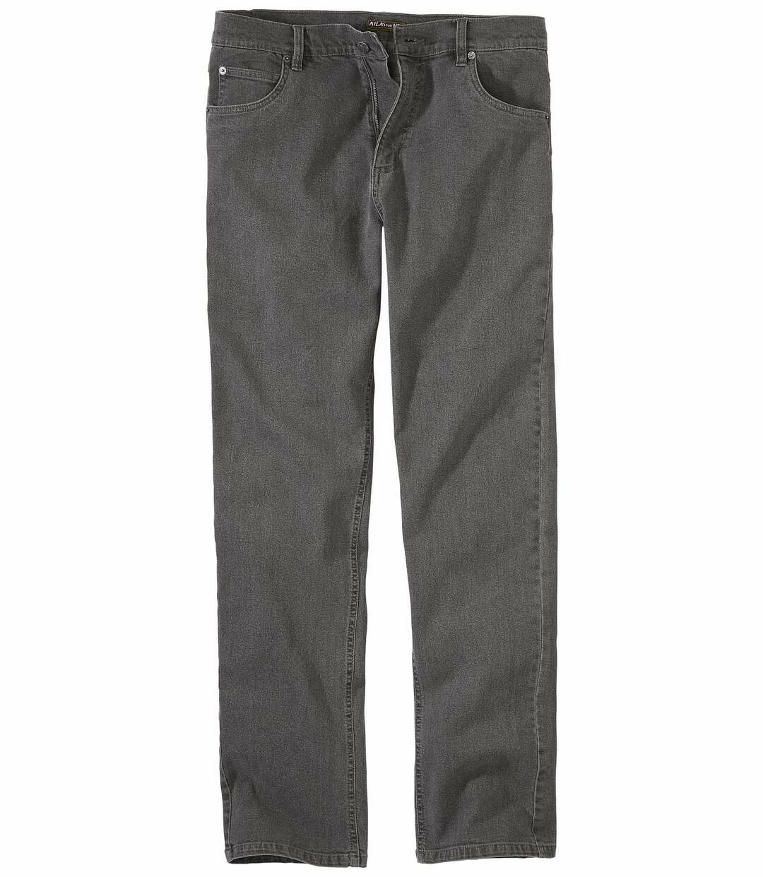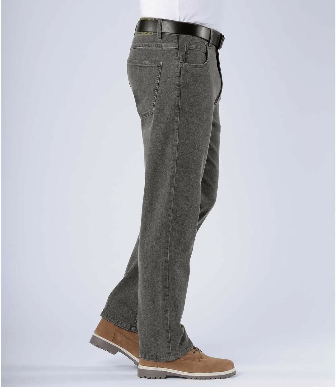 Graue Regular-Jeans Stretch: Diese gerade geschnittene Jeans aus strapazierfähigem und zugleich bequemem Denim (11 oz.) gehört in jeden Kleiderschrank! Einwandfreie Verarbeitungsqualität: 2 Einstecktaschen mit Nieten und 1 Münztasche vorne und 2 aufgesetzte Gesäßtaschen. Nähte Ton in Ton, Badge aus Kunstleder. Schrittlänge bei Größe 50: ca. 86 cm. Fußweite: ca. 22 cm. Maschinenwaschbar bei 30°. Farbe: Dunkelgrau. Art.-Nr.: M2114