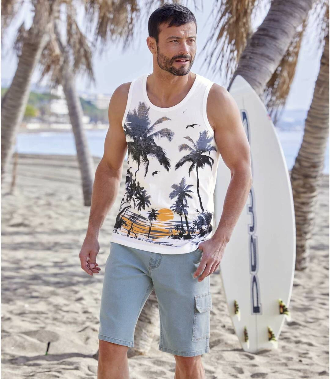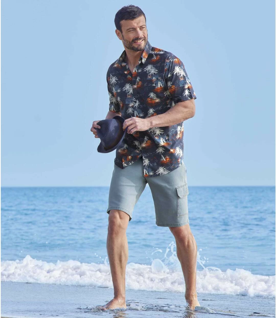 Hellblaue Cargo-Bermuda aus Stretch-Denim: Mit dieser Bermuda können Sie Ihrem Jeans-Look treu bleiben, denn sie wird aus leichtem Stretch-Denim (9,5 oz) gefertigt. Bequemer Schnitt mit seitlichen Dehneinsätzen am Bund. Verdeckter RV mit Abschlussknopf aus Metall. 6 praktische Taschen: 2 Einstecktaschen und 1 Münztasche mit Nieten vorne und 2 aufgesetzte Gesäßtaschen und 1 Cargo-Tasche mit Klettklappe. Verarbeitung mit Doppelnähten. 98% Baumwolle, 2% Elasthan. Schrittlänge bei Größe L: ca. 30 cm, Beinweite: ca. 26 cm. Maschinenwaschbar bei 30°. Farbe: Hellblau – Art.-Nr.: K2130