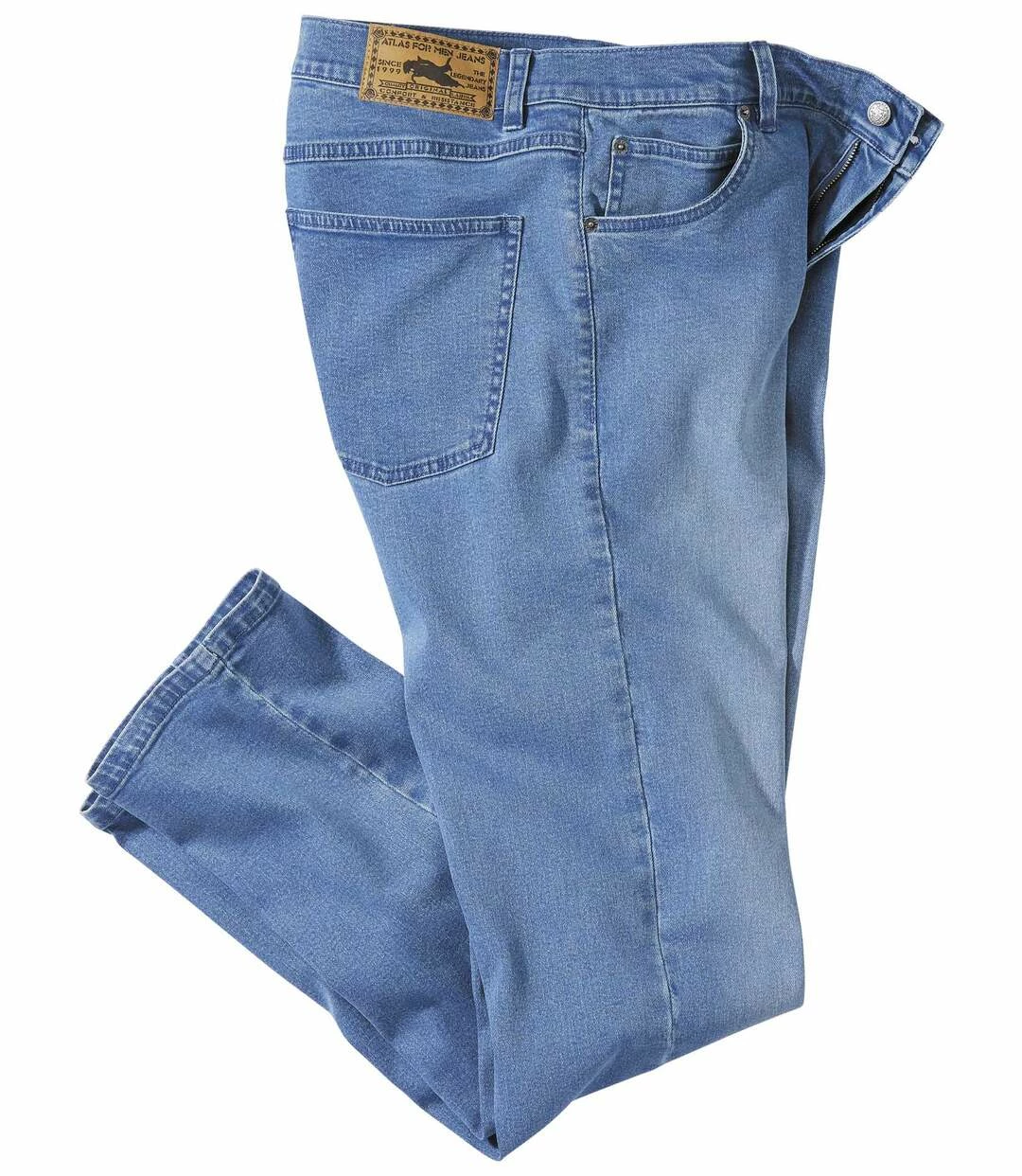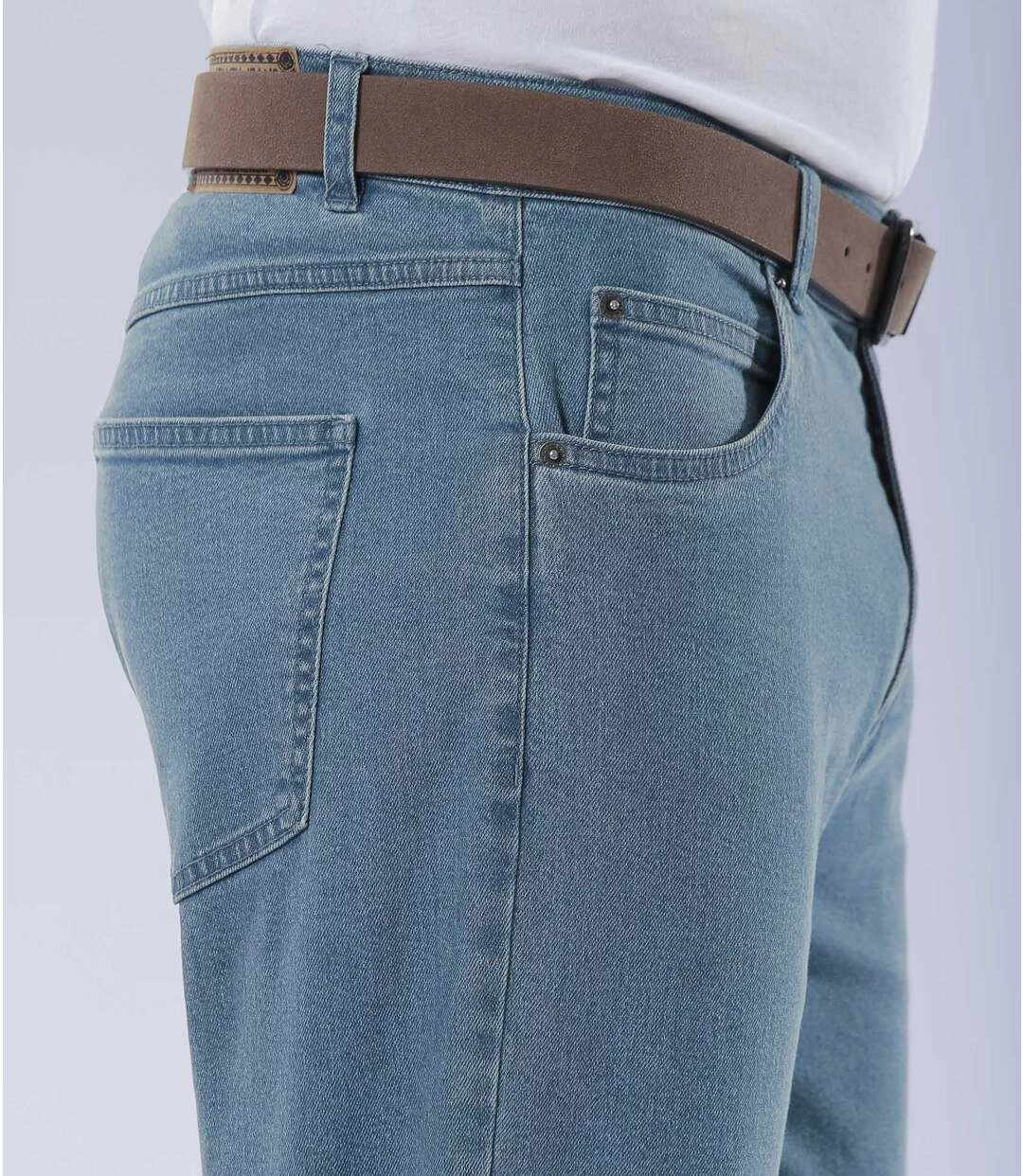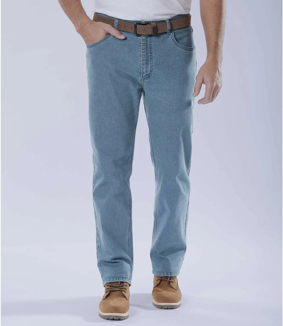 Hellblaue Stretch-Jeans: Die Jeans ist ein unverzichtbarer Klassiker der Männergarderobe. Man kann sie zu jeder Gelegenheit und Jahreszeit tragen. Dieses robuste, gegen Schmutz unempfindliche und bequeme Modell macht einfach alles mit! Sie ist aus leichtem Denim (11 oz) und hat alle typischen Jeans-Details: Gerader Schnitt, Bund mit Schlaufen, RV mit Abschlussknopf aus Metall, 2 Einstecktaschen und 1 Münztasche vorne und 2 aufgesetzte Gesäßtaschen. 98% Baumwolle, 2% Elasthan. Schrittlänge bei Größe 52: ca. 86 cm, Fußweite: ca. 22 cm. Maschinenwaschbar bei 30°. Farbe: Hellblau – Art.-Nr.: V4052