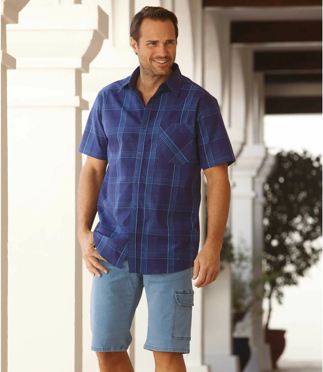 Hemd Blue Stripes: Die Farbkombination aus kräftigem Blau und leuchtendem Türkis ist typisch für den Sommer. Das Hemd ist aus weichem Popelin mit Webkaros (ca. 110 g/m²). Mit seinem lässigen Stil passt es sehr gut zu einer leichten Tuchhose oder einer Bermuda. Perfekter Schnitt: Kentkragen, aufgesetzte Brusttasche, dunkelblaue Knöpfe, Rückenpasse mit 2 Bewegungsfalten, abgerundeter Saum. 100% Baumwolle. Rückenlänge bei Größe L: ca. 80 cm. Maschinenwaschbar bei 30°.Farben: Karos in Dunkelblau und Türkis – Art.-Nr.: V4012 20