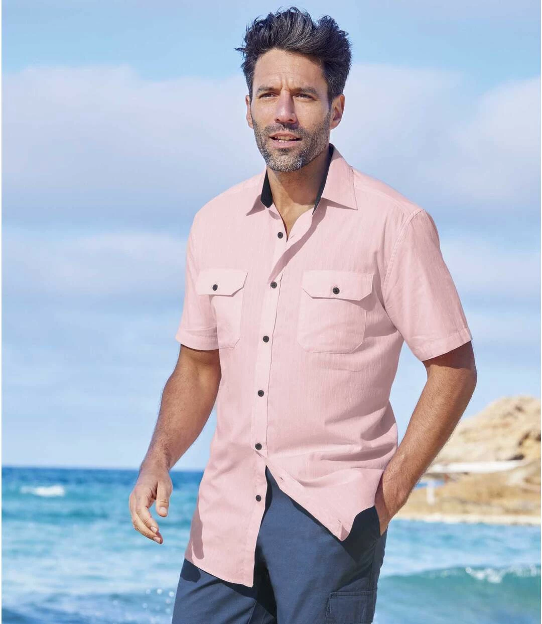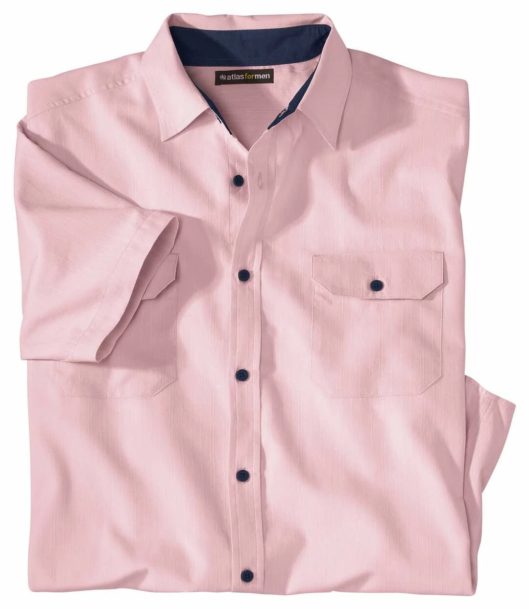 Hemd in Pastel-Rosa: Mit diesem kurzärmeligen Hemd in zartem Rosa strahlen Sie klassische Eleganz aus. Die Baumwolle hat einen leichten Struktur-Effekt. Dezente, dunkelblaue Kontrastdetails (Knöpfe, Krageninnenseite aus Popelin). Klassischer, bequemer Schnitt: 2 Brusttaschen mit Knopfklappe. Kentkragen, Rückenpasse mit 2 Bewegungsfalten, abgerundeter Saum. Knöpfe in Perlmuttoptik. 100% Baumwolle. Rückenlänge bei Größe L: ca. 80 cm. Maschinenwaschbar bei 30°. Farbe: Zartes Rosa – Art.-Nr.: K3130