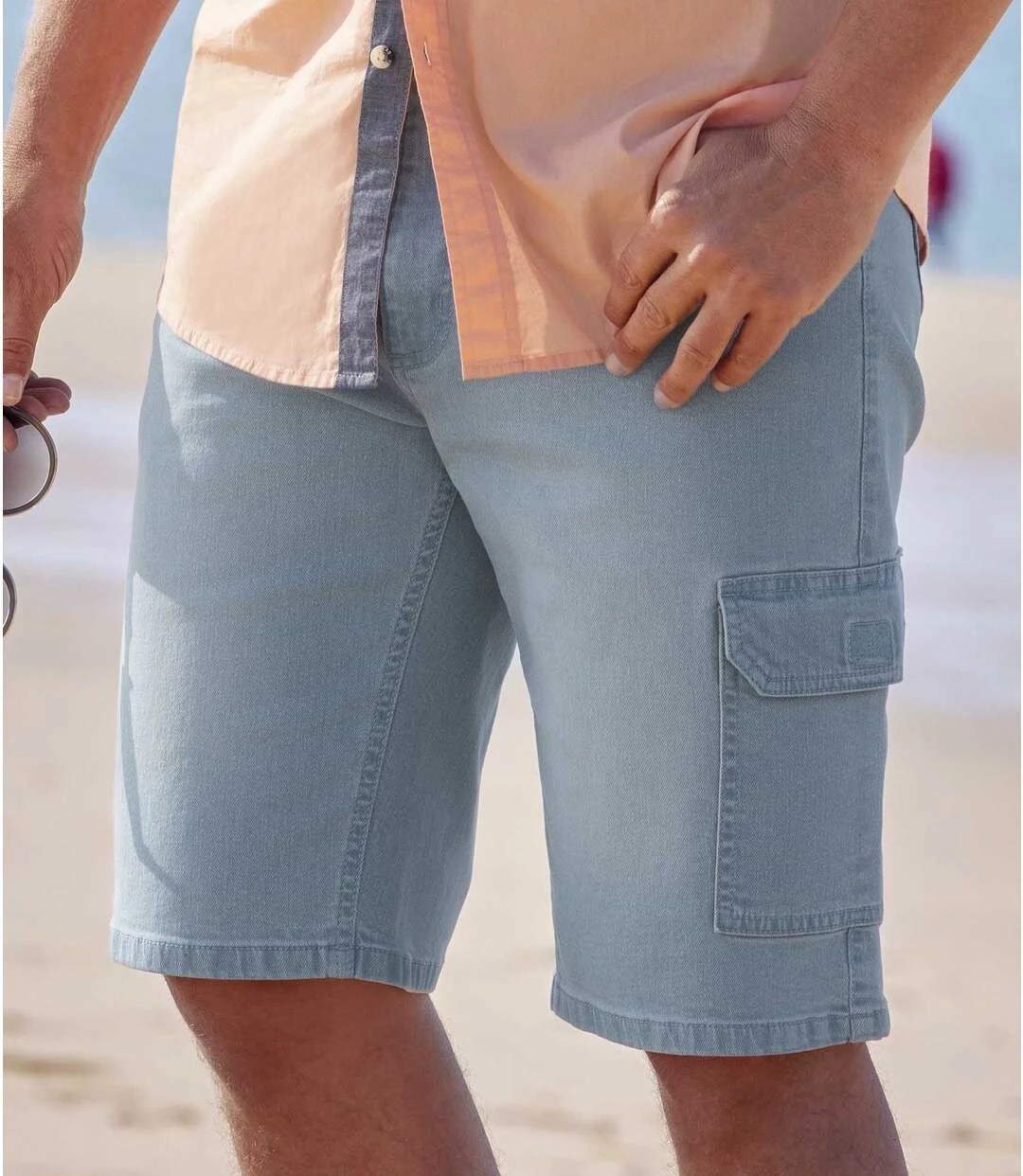 Jeans-Bermuda mit Stretch-Effekt im Cargo-Stil: Wenn’s in den Süden geht, muss diese Bermuda aus leichtem und robustem Denim (9,5 oz) in ausgewaschener Optik unbedingt ins Reisegepäck! Der Bund mit Schlaufen wird mit einem verdeckten RV inkl. Abschlussknopf aus Metall verschlossen. Top-Komfort ist garantiert dank des bequemen Schnitts und der Garnmischung aus Baumwolle und Elasthan. Die Bermuda hat 6 praktische Taschen: 2 Einstecktaschen und 1 Münztasche mit Nieten vorne und 2 aufgesetzte Gesäßtaschen und 1 Cargo-Tasche mit Klettklappe. Doppelnähte Ton in Ton. 98% Baumwolle, 2% Elasthan. Schrittlänge bei Größe 50: ca. 30 cm, Beinweite: ca. 26 cm. Maschinenwaschbar bei 30°. Farbe: Hellblau – Art.-Nr.: K4114