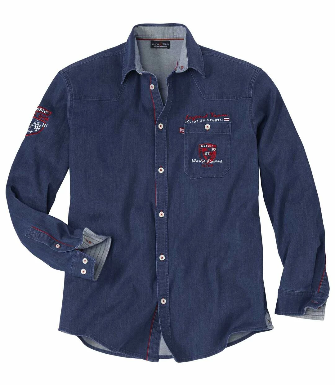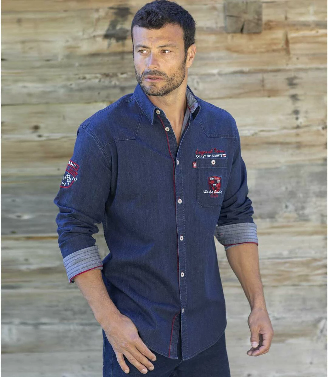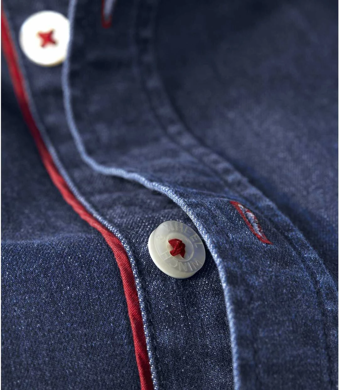 Jeans-Hemd aus ungebleichtem Denim: Getreu des sportlichen Chic der Marke Winch and Wheel empfehlen wir Ihnen dieses Hemd aus ungebleichtem Denim (7,1 oz) mit zahlreichen Design-Akzenten aus dem Automobilsport. Stickereien auf dem rechten Oberarm und auf der Unterseite des Kragens sowie auf der geknöpften Brusttasche in Kombination mit einem gewebten und bestickten Wappen. Zusätzliche optische Akzente setzen rote Paspeln auf der Innenseite des Kragens, an den Manschetten und entlang der Unterseite der Knopfleiste sowie Nieten seitlich am Saum. Ein modisches Modell mit bequemem Schnitt: Kentkragen, Knopfmanschetten, Rückenpasse, abgerundeter Saum. Die Knöpfe in Perlmuttoptik sind mit rotem Garn vernäht. Rückenlänge bei Größe L: ca. 81 cm. Maschinenwaschbar bei 30°. Farbe: Ungebleichtes Jeansblau.