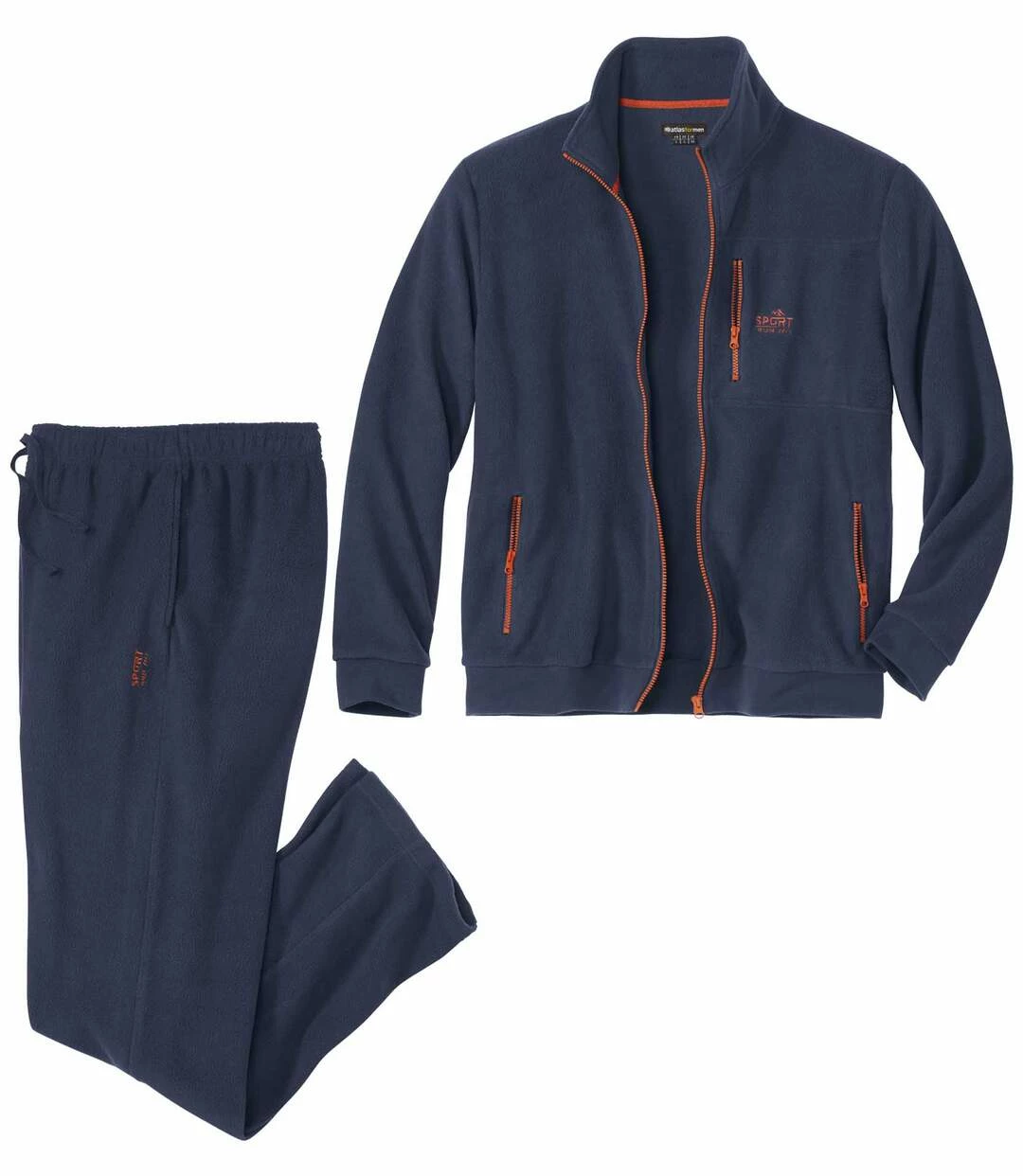 Jogging-Anzug Atlas(R) aus Fleece: Gönnen Sie sich für den Winter diesen Jogging-Anzug aus weichem und warmem Fleece (ca. 210 g/m²). Die Jacke hat einen durchgehenden Reißverschluss, einen hochschließenden Kragen sowie 3 Taschen mit Reißverschluss. Die Rippbündchen an den Ärmeln und am Saum sorgen für optimale Isolierung. Die superbequeme, gerade geschnittene Hose hat einen Elastikbund inkl. Verstellkordel sowie 2 seitliche Paspeltaschen. Details in Orange: Reißverschlüsse, kleine Stickerei Sport auf dem Oberteil und auf der Hose. Dieser Jogging-Anzug ist ausgesprochen pflegeleicht, da er schnell trocknet und bügelfrei ist. Rückenlänge bei Größe L: ca. 74 cm, Schrittlänge: ca. 81 cm, Fußweite: ca. 22 cm. Maschinenwaschbar bei 30°. Schnell trocknend und bügelfrei. Farben : Dunkelblau, Details in Orange.