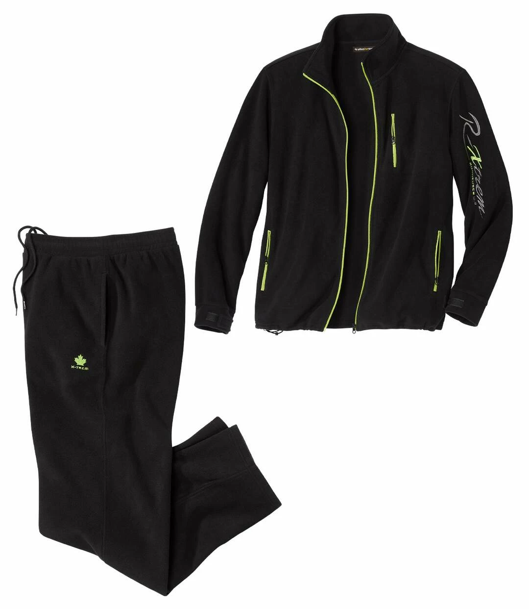 Jogging-Anzug aus warmem Fleece: Ganz gleich ob Sie Rekorde brechen wollen oder tiefenentspannen – in diesem Jogging-Anzug aus warmem und weichem Fleece (ca. 190 g/m²) geht beides! Die Jacke mit hochschließendem Kragen, Elastikbündchen und verstellbarem Saum mit Stoppern bietet perfekte Isolierung. In den beiden seitlichen Reißverschlusstaschen fi nden die wichtigen persönlichen Dinge Platz. Die Hose hat ebenfalls 2 Seitentaschen und eine innenliegende Verstellkordel. Dynamisch-sportives Detail: Schriftdruck auf dem linken Ärmel in Anisgrün. Kleine Stickerei auf der Hose. Verarbeitung mit Doppelnähten. 100% Polyester. Einseitiger Anti-Pilling-Effekt. Rückenlänge bei Größe L: ca. 74 cm, Schrittlänge: ca. 81 cm, Fußweite: ca. 22 cm. Maschinenwaschbar bei 30°. Farben: Schwarz, Details in Anisgrün – Art.Nr.: F8141