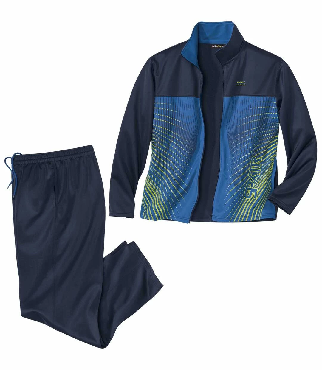 Jogging-Anzug Sport und Run: Für das Training und die Freizeit empfehlen wir Ihnen diesen bequemen Jogging-Anzug aus pflegeleichtem Polyester (ca. 190 g/m²). Die weit geschnittene Jacke hat einen gedoppelten hochschließenden Kragen, der innen in Kontrastfarbe abgesetzt ist, sowie 2 praktische seitliche RV-Taschen. Bequeme Hose mit Elastikbund inkl. innenliegender Verstellkordel. Herrlicher, dynamisch wirkender Aufdruck auf der Brust, Verstellkordel der Hose in Kontrastfarbe. Verarbeitung mit Doppelnähten. 100% Polyester. Rückenlänge bei Größe L: ca. 74 cm, Schrittlänge: ca. 81 cm, Fußweite: ca. 22 cm. Maschinenwaschbar bei 30°. Farben: Dunkelblau, Blau – Art.-Nr.: K2148