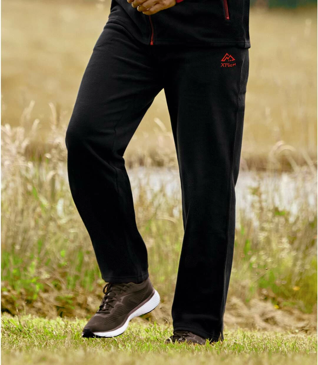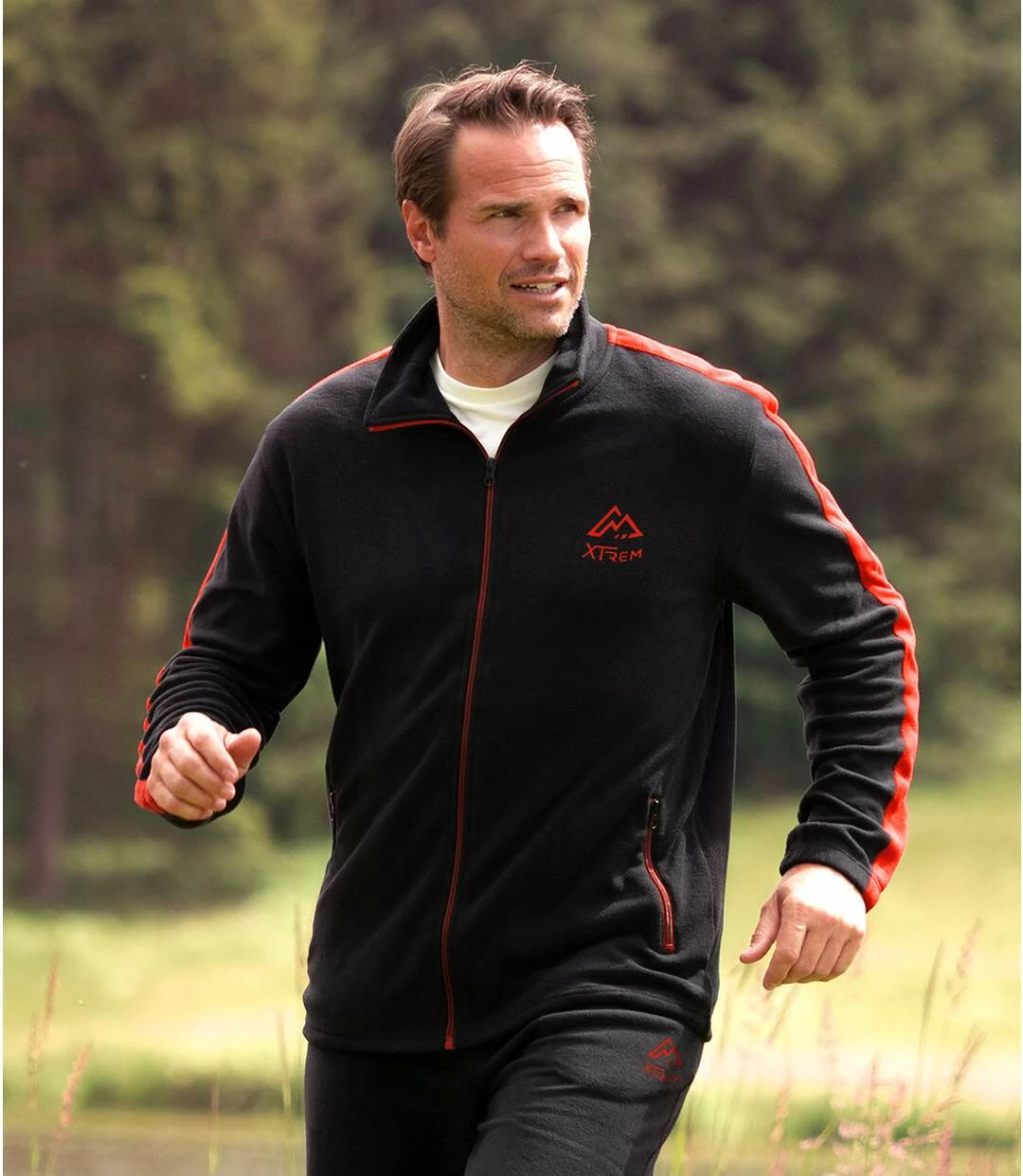 Jogging-Anzug Sporting Outdoor: Ganz gleich ob Sie Rekorde brechen wollen oder tiefenentspannen – in diesem Jogging-Anzug aus warmem und weichem Fleece (ca. 210 g/m²) geht beides! Die Jacke mit hochschließendem Kragen, Elastikbündchen und verstellbarem Saum mit Stoppern bietet perfekte Isolierung. In den beiden seitlichen Reißverschluss-Taschen finden die wichtigen persönlichen Dinge Platz. Die Hose hat ebenfalls 2 Seitentaschen und eine innenliegende Verstellkordel. Dynamisch-sportives Detail: breites Kontrastband von den Schultern bis zu den Ärmelbündchen in Rot. Kleine Stickereien auf Jacke und Hose. Verarbeitung mit Doppelnähten. 100% Polyester. Einseitiger Anti-Pilling-Effekt. Rückenlänge bei Größe L: ca. 74 cm, Schrittlänge: ca. 81 cm, Fußweite: ca. 22 cm. Maschinenwaschbar bei 30°. Farben: Schwarz, Details in Rot – Art.-Nr.: G8173