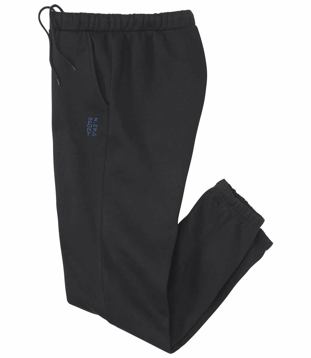 Jogginghose Sport aus Molton: Ob beim Sport oder beim Entspannen – genießen Sie den Top-Komfort dieser Jogginghose aus innen angerautem Molton (ca. 265 g/m²)! Die Hose hat einen Elastikbund mit Verstellkordel und anliegende Beinabschlüsse mit einer Elastikpaspel. Außerdem verfügt das Modell über 2 Seitentaschen und 1 aufgesetzte Gesäßtasche. Stickerei Sport unterhalb der linken Tasche. Schrittlänge bei Größe L: ca. 84 cm, Fußweite: ca. 14 cm. Maschinenwaschbar bei 30°. Farbe : Schwarz.
