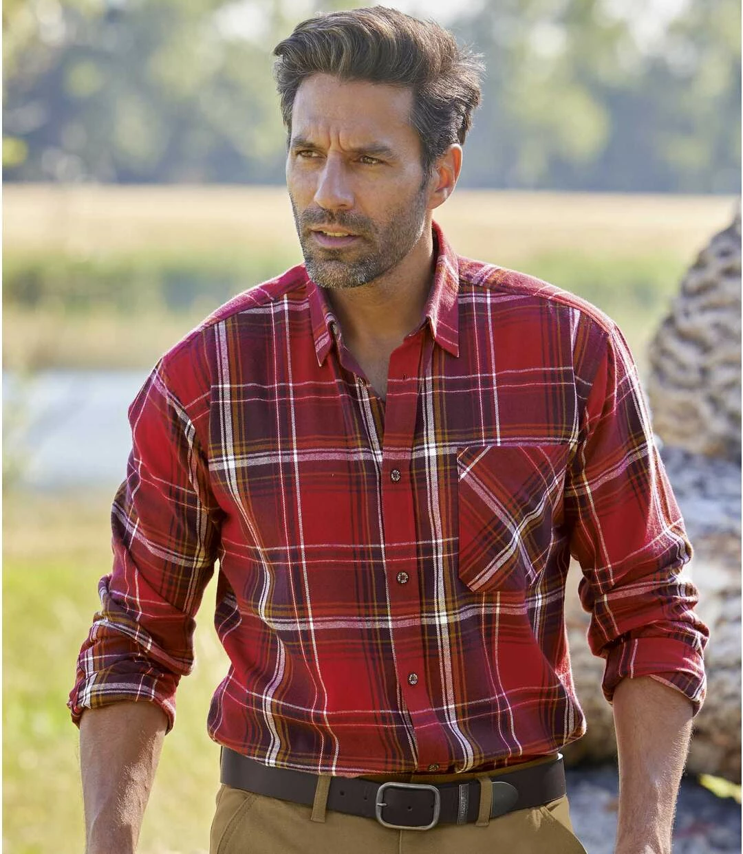 Kariertes Flanell-Hemd Holzfäller: Die für ein Holzfällerhemd typischen Webkaros verleihen diesem langärmeligen Hemd aus warmem und weichem Flanell (ca. 160 g/m²) seinen authentischen Look! Perfekte Verarbeitung: Kentkragen, Brusttasche, Knopfmanschetten. Weiter und bequemer Schnitt mit 2 Bewegungsfalten im Rücken und abgerundetem Saum. 100% Baumwolle. Rückenlänge bei Größe L: ca. 81 cm. Maschinenwaschbar bei 30°. Farben: Karos in Rot, Camel und Natur – Art.-Nr.: K8127
