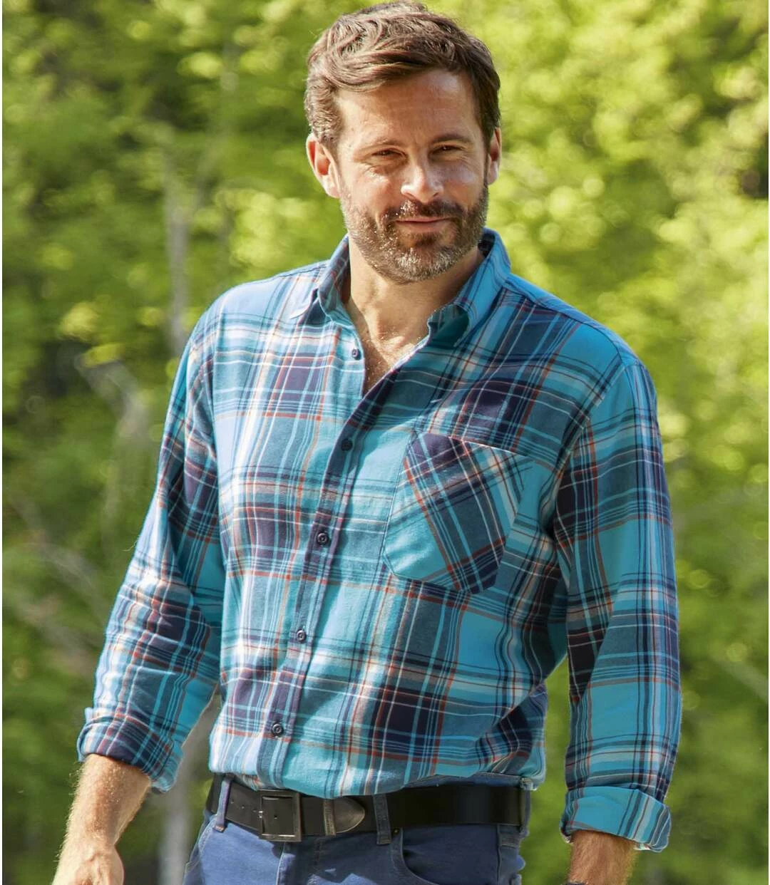 Kariertes Flanellhemd Atlas(R): Komfort und Stil sind garantiert bei diesem langärmeligen Hemd in Blautönen. Es ist aus sehr warmem Flanell (ca. 160 g/m²) und hat ein Webkaromuster. Weiter Schnitt mit 2 Bewegungsfalten im Rücken und abgerundetem Saum. Sorgfältige Verarbeitung: Kentkragen, Brusttasche, Knopfmanschetten. 100% Baumwolle. Rückenlänge bei Größe L: ca. 81 cm. Maschinenwaschbar bei 30°. Farben: Türkis kariert – Art.-Nr.: J2126
