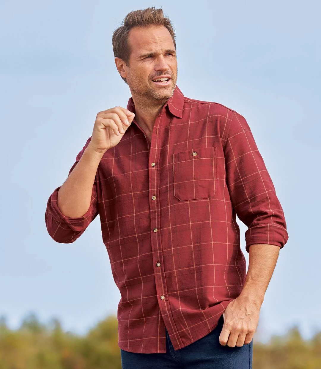 Kariertes Flanellhemd Atlas®: Die Webkaros dieses Hemds aus angenehm flauschigem Flanell (ca. 160 g / m²) sind etwas dezenter und edler. Die herrliche Verarbeitung garantiert besten Tragekomfort. Kentkragen, Knopfmanschetten, Brusttasche. Rückenpasse mit 2 Bewegungsfalten und abgerundetem Saum. Knöpfe in Hornoptik. 100% Baumwolle. Rückenlänge bei Größe L: ca 81 cm. Maschinenwaschbar bei 30°. Farben: Karos in Bordeauxrot, Beige und Braun – Art.-Nr.: J3168