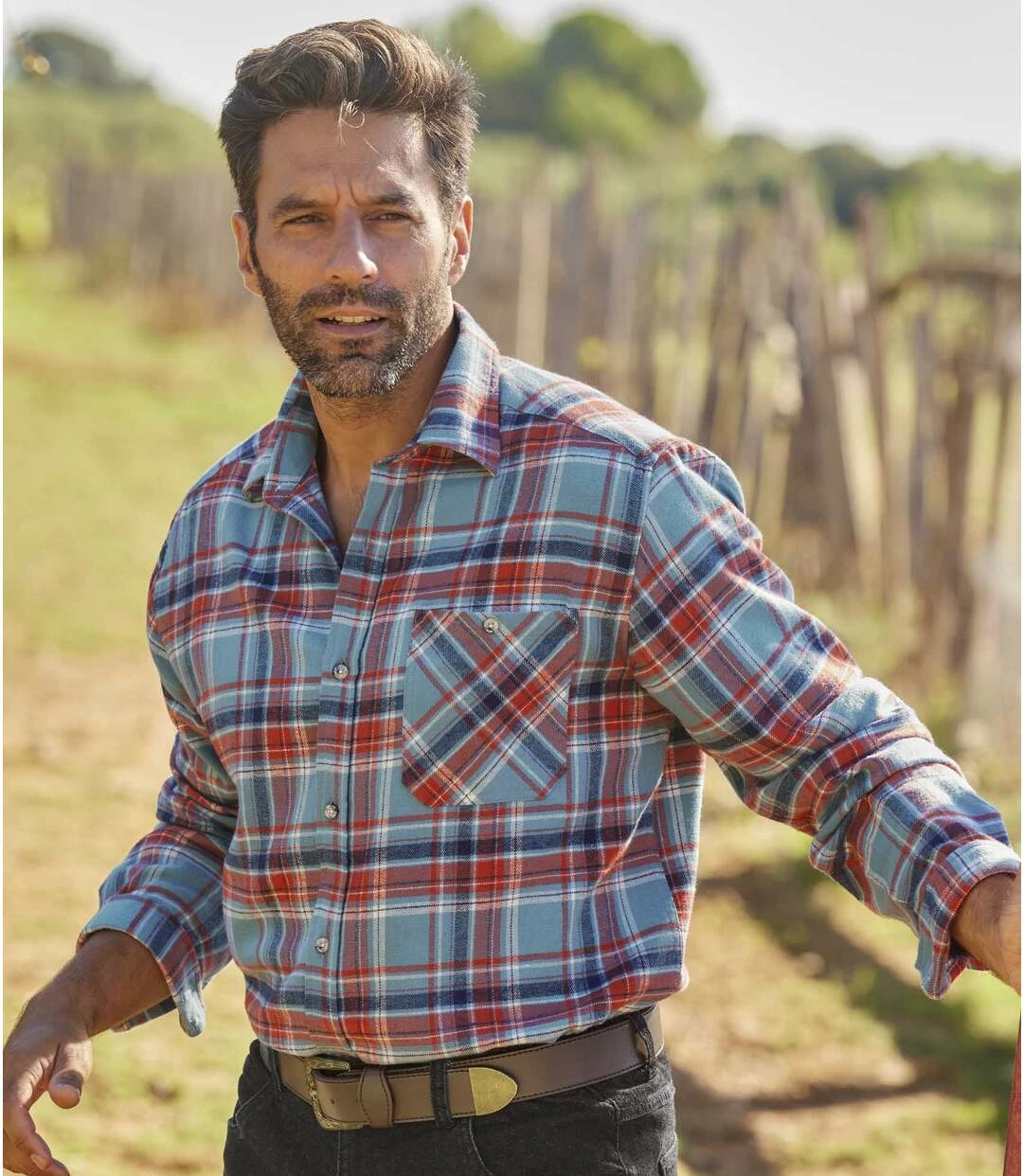 Kariertes Flanellhemd in Gletscherblau: Verlassen Sie sich auf den Tragekomfort dieses stilvollen Hemds aus weichem und warmem Flanell (ca. 160 g/m²). Lässiger Schnitt mit 1 geknöpften Brusttasche. Kentkragen und Knopfmanschetten. Rückenpasse mit 2 Bewegungsfalten und abgerundetem Saum. Knöpfe in Hornoptik. 100% Baumwolle. Rückenlänge bei Größe L: ca. 81 cm. Maschinenwaschbar bei 30°. Farben: Blau kariert – Art.-Nr.: L1143