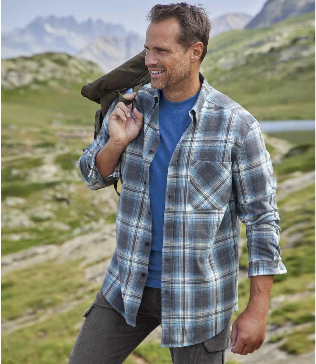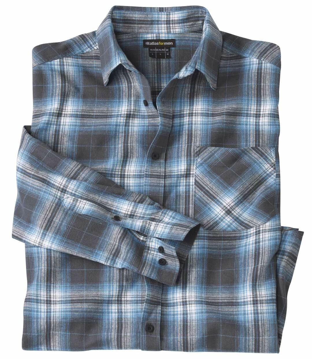 Kariertes Flanellhemd Montana: Der flauschige Flanell (ca. 160 g/m²) dieses weichen und warmen Hemds mit Webkaros fühlt sich einfach gut an. Weiter Schnitt mit 1 aufgesetzten Brusttasche. Entweder Sie tragen das Hemd klassisch in die Hose gesteckt oder Sie tragen es lässig über der Hose – Ihre Entscheidung. Kentkragen, Knopfmanschetten. Rückenpasse mit 2 Bewegungsfalten, abgerundeter Saum. Anthrazitfarbene Knöpfe. Rückenlänge bei Größe L: ca. 81 cm. Maschinenwaschbar bei 30°. Farben: Karos in Anthrazit, Blau und Rohweiß.