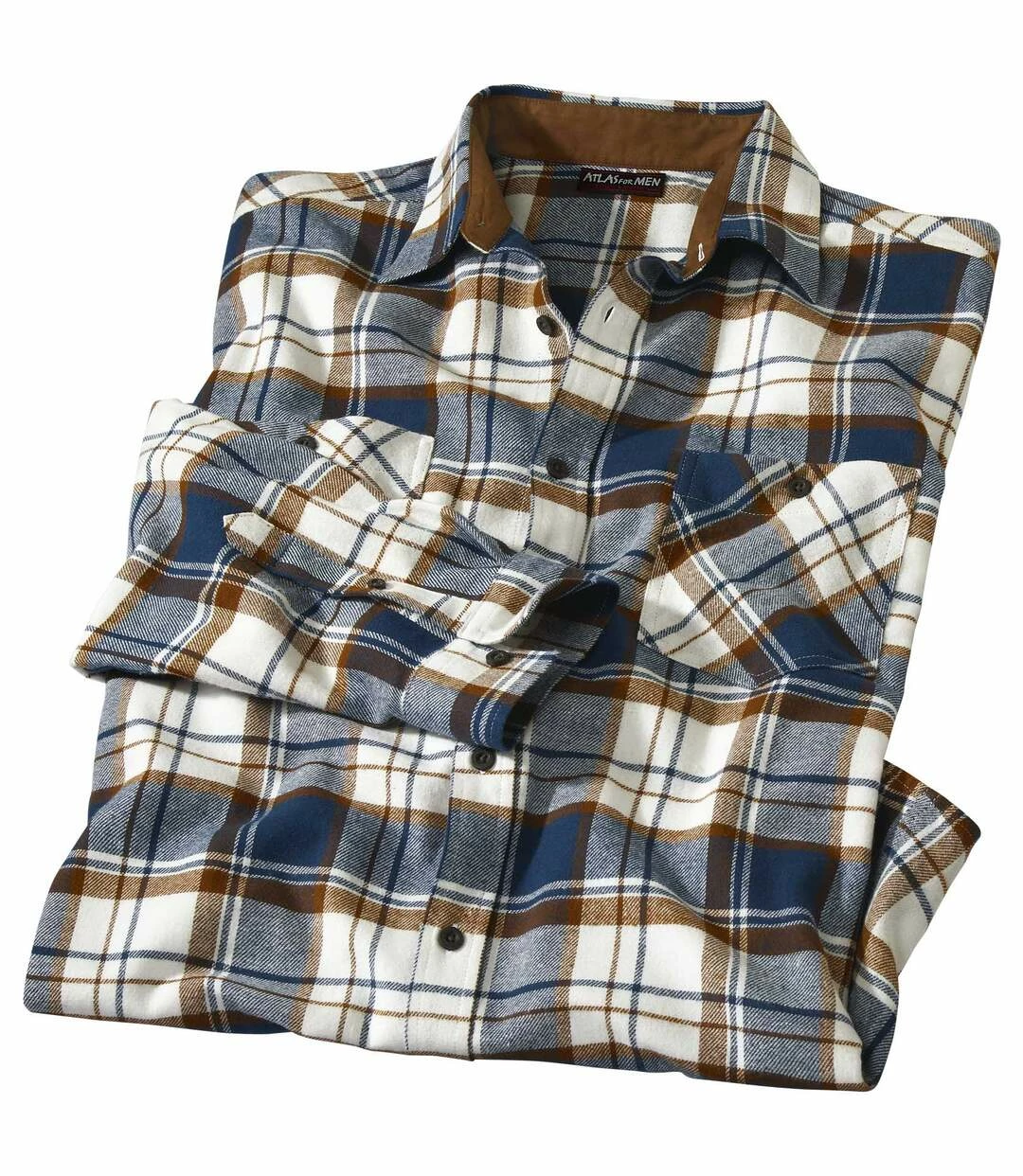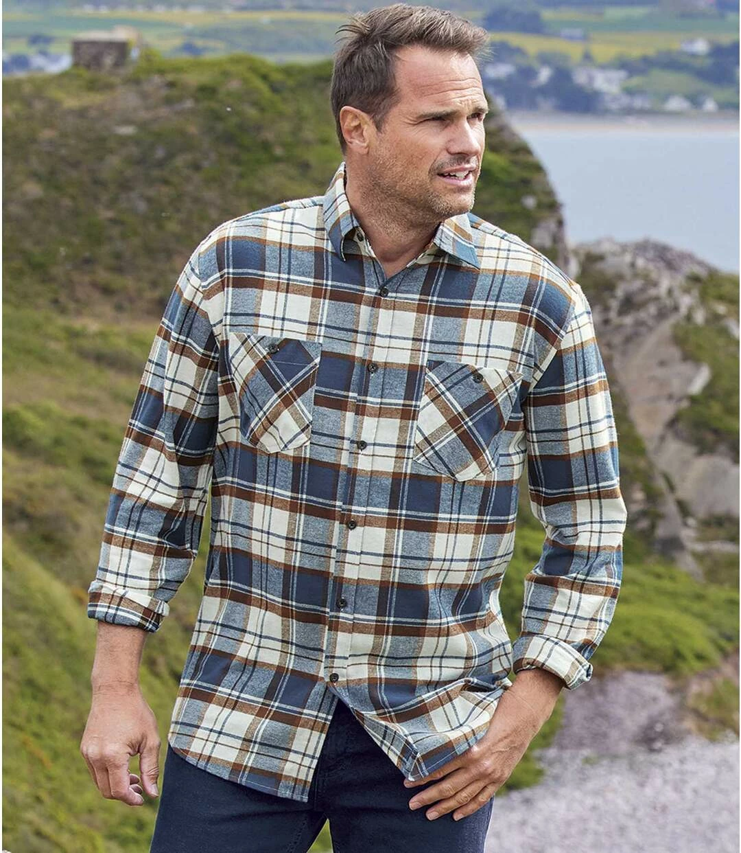 Kariertes Flanellhemd Rocky Mountains: Wir wär’s mit diesem karierten Hemd aus flauschigem Flanell (ca. 160 g/m²). Der lässige Stil passt perfekt zu einer Jeans oder einer braunen Kordhose. Einwandfreier Schnitt: Kentkragen, Knopfmanschetten, 2 geknöpfte Brusttaschen, 2 Bewegungsfalten im Rücken, abgerundeter Saum. Krageninnenseite in Kontrastfarbe. Dunkelbraune Knöpfe. 100% Baumwolle. Rückenlänge bei Größe L: ca. 81 cm. Maschinenwaschbar bei 30°. Farben: Karos in Dunkelblau, Natur und Braun – Art.-Nr.: F4123