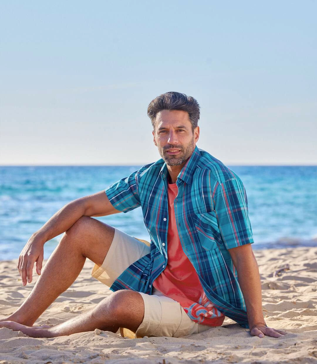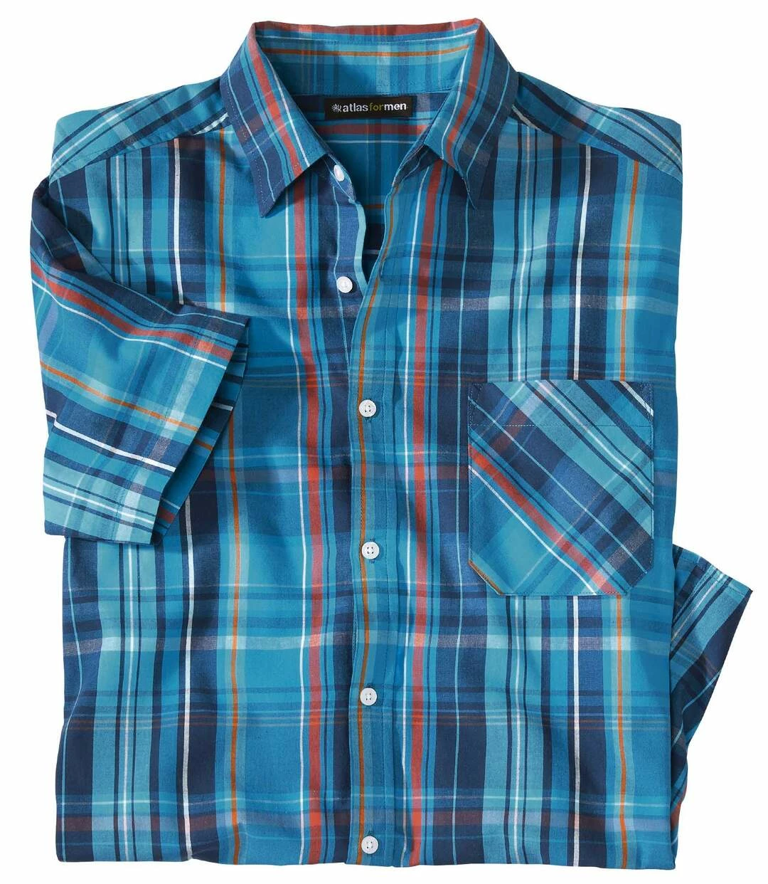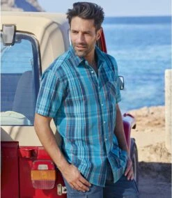 Kariertes Hemd Ocean: Das ist ein typischer Sommerlook- kurze Ärmel und Webkaros in den Farben des Ozeans. Das bequeme Modell aus weichem Popelin (ca. 110 g/m²) ist lässig geschnitten und hat eine aufgesetzte Brusttasche sowie einen Kentkragen, Knöpfe in Perlmuttoptik, eine Rückenpasse mit 2 Bewegungsfalten und einen abgerundeten Saum. 100% Baumwolle. Rückenlänge bei Größe L: ca. 80 cm. Maschinenwaschbar bei 30°. Farbe: Blau kariert – Art.-Nr.: K3119