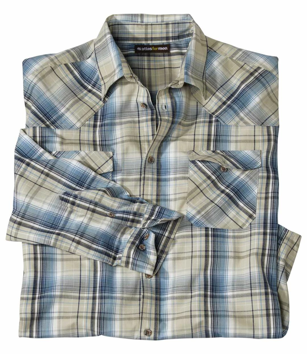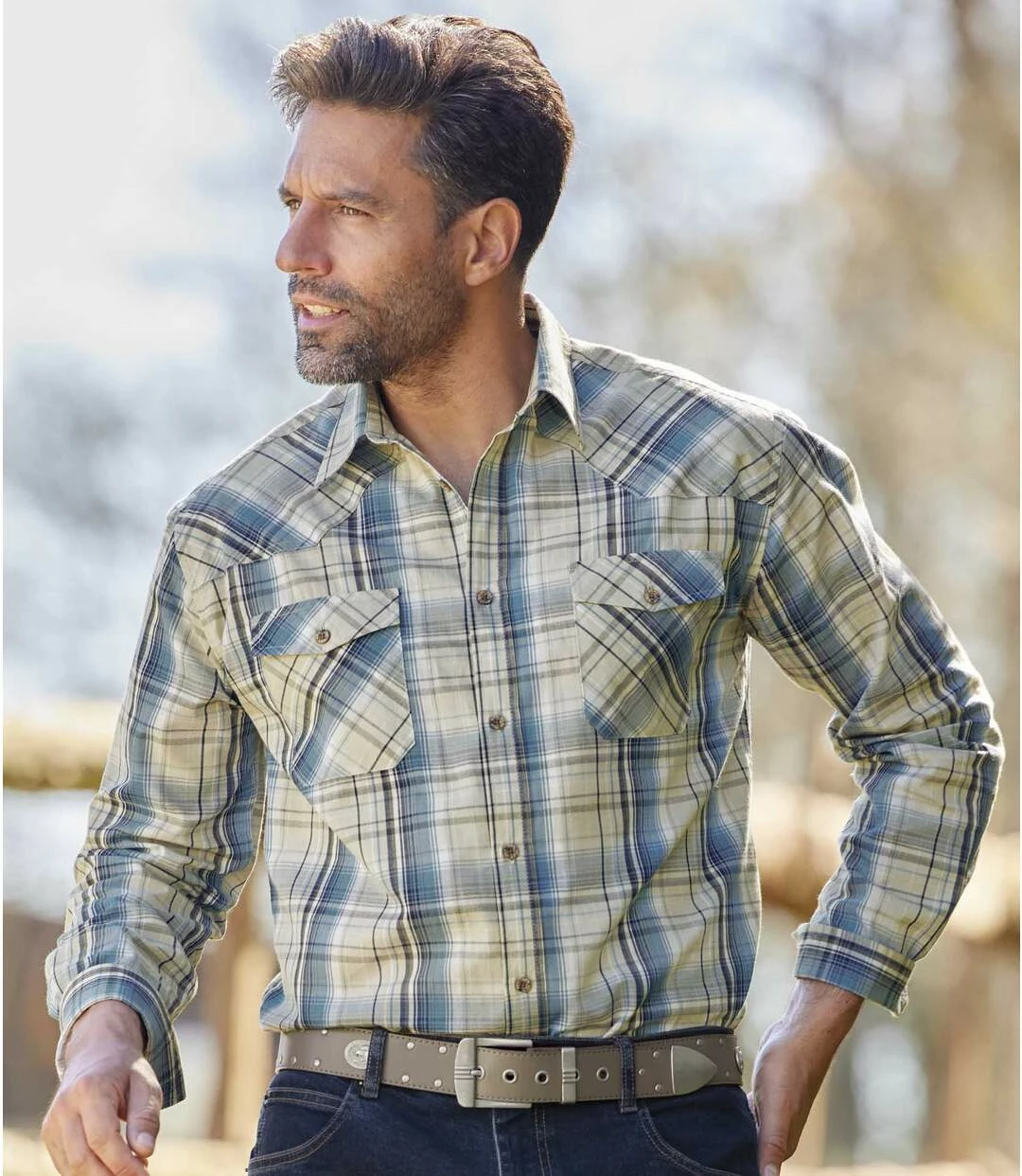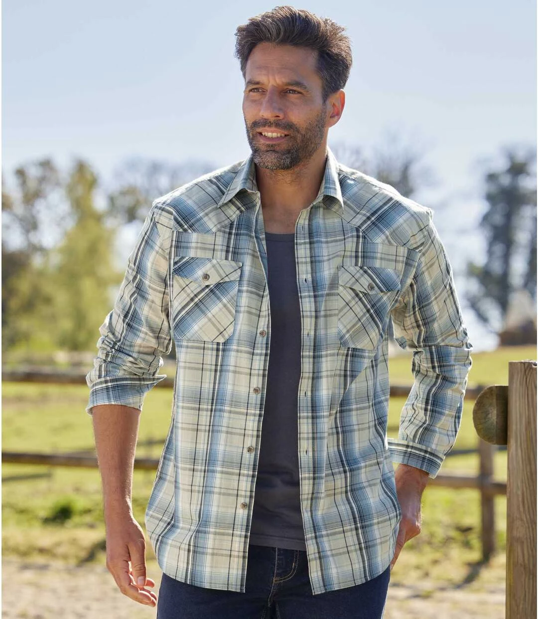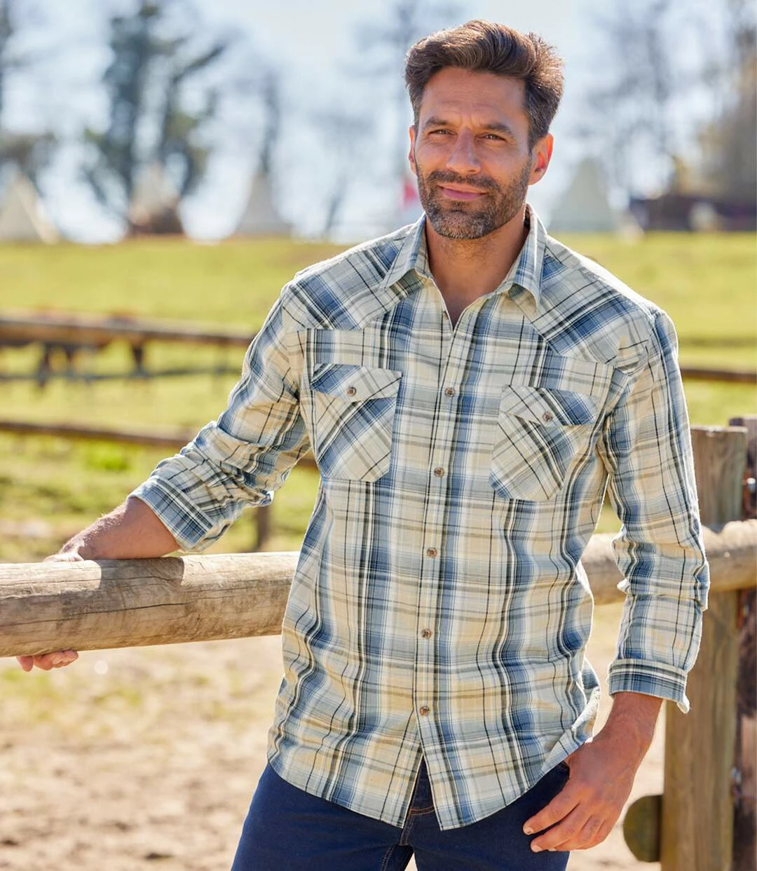 Kariertes Hemd Ranch: Hier ist das perfekte Hemd für Abenteurer von heute! Es wird aus herrlichem Popelin (ca. 110 g/m²) mit Webkaros gefertigt und hat an den Schultern die typischen Western-Passen sowie 2 Brusttaschen mit Knopfklappen. Kentkragen und Knopfmanschetten. Bequemer Schnitt: Rückenpasse mit 2 Bewegungsfalten, abgerundeter Saum. Knöpfe in Hornoptik. 100% Baumwolle. Rückenlänge bei Größe L: ca. 81 cm. Maschinenwaschbar bei 30°. Farben: Karos in Beige und Blau – Art.-Nr.: K5122