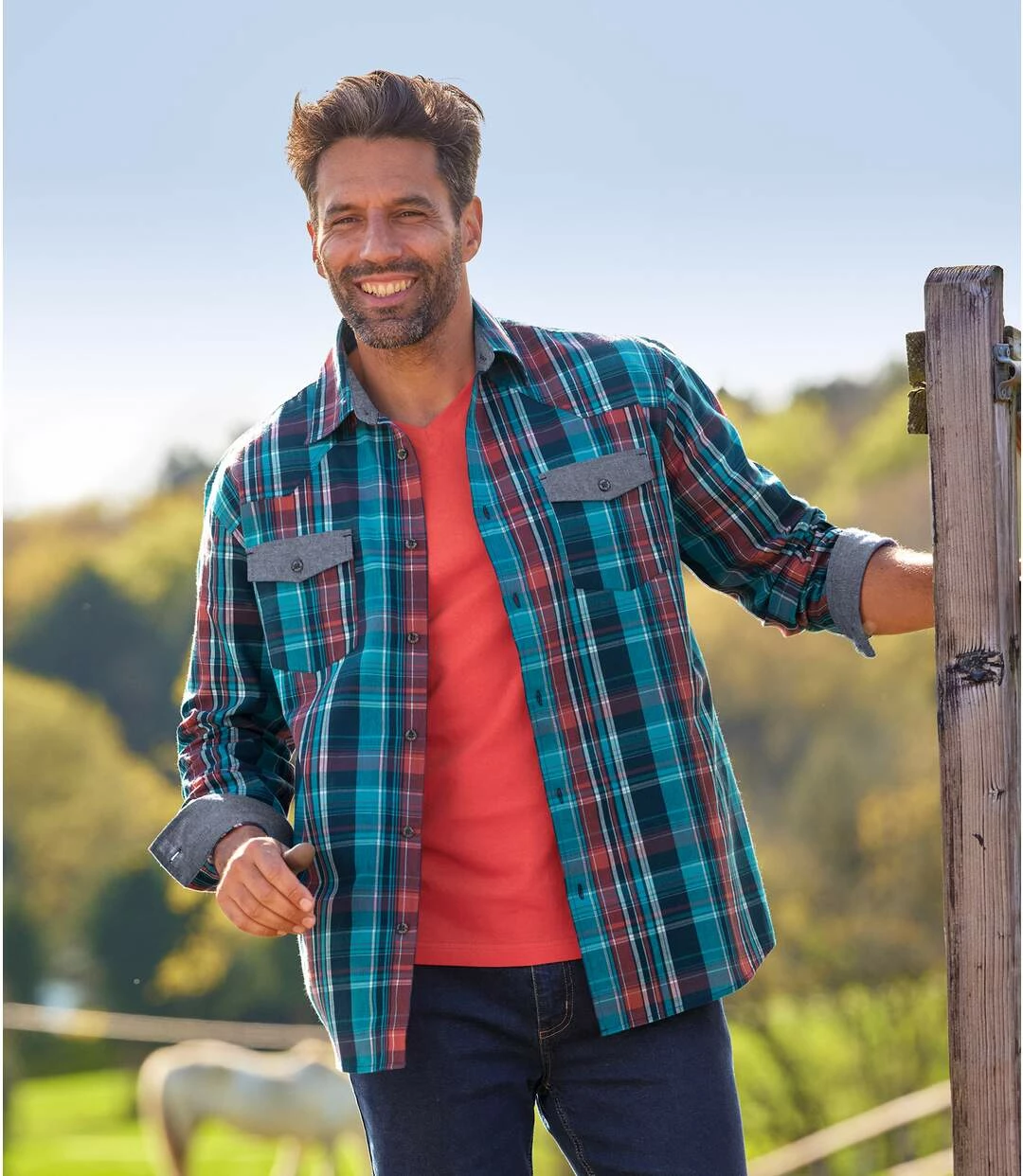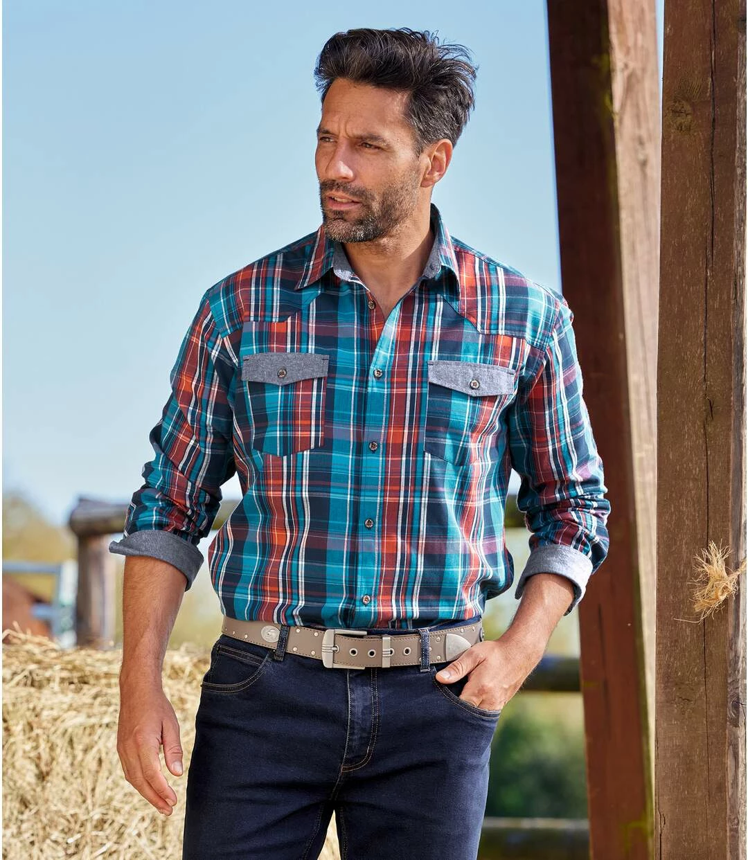 Kariertes Hemd Texas: Ein kariertes Hemd aus weichem Popelin (ca. 110 g/m²) kann man immer brauchen! Dieses Modell begeistert zudem mit Western-Passen und blauen Chambray-Details: Innenseiten des Kragens und der Manschetten, Knopfklappen der Brusttaschen. Schöne Verarbeitung: Kentkragen, Knopfmanschetten, Rückenpasse mit 2 Bewegungsfalten, abgerundeter Saum. Knöpfe in Hornoptik. 100% Baumwolle. Rückenlänge bei Größe L: ca. 81 cm. Maschinenwaschbar bei 30°. Farben: Karos in Blau, Dunkelblau und Korallenrot – Art.-Nr.: K5114