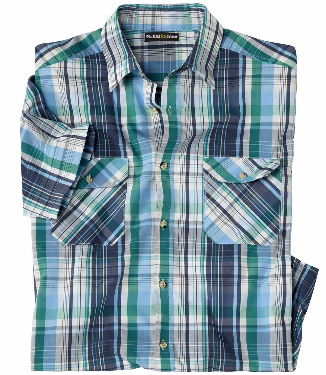 Kariertes Popelin-Hemd mit Stretch-Effekt: Wenn bei Ihnen Tragekomfort an erster Stelle steht, dann empfehlen wir Ihnen dieses karierte Hemd aus Popelin mit Stretch-Effekt (ca. 110 g/m²)! Der Stoff dieses unkomplizierten Modells ist leicht dehnbar. Lässiger Schnitt mit 2 Brusttaschen inkl. Knopfklappen. Sorgfältige Verarbeitung: Kentkragen, Knöpfe in Hornoptik, Rückenpasse mit 2 Bewegungsfalten, abgerundeter Saum. 70% Baumwolle, 27% Polyester, 3% Elasthan Rückenlänge bei Größe L: ca. 80 cm. Maschinenwaschbar bei 30°. Farben: Karos in Dunkelblau, Blau und Grün.
