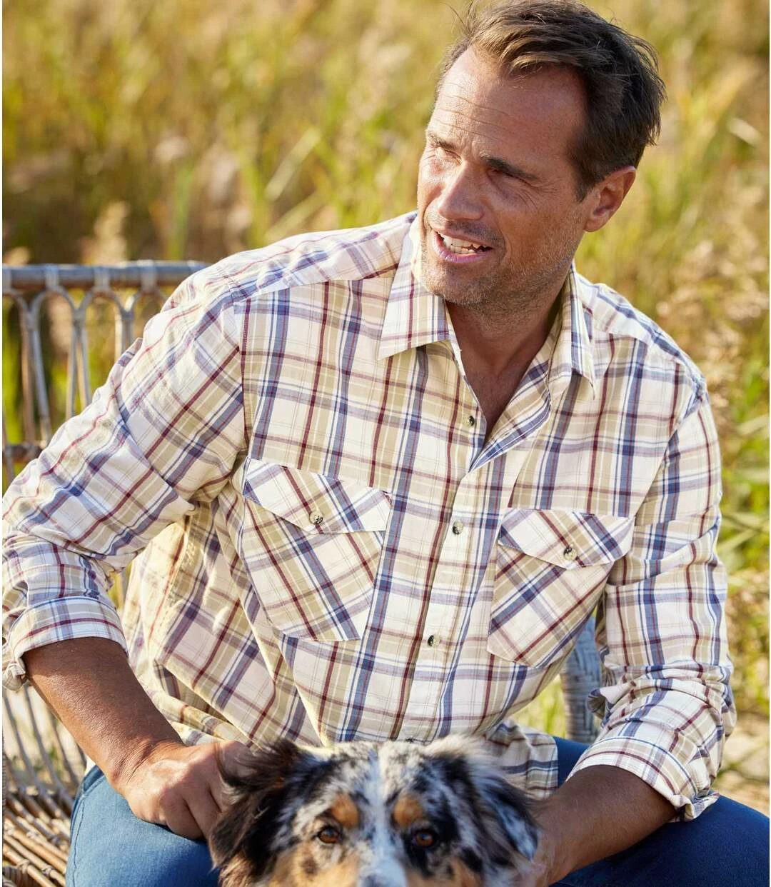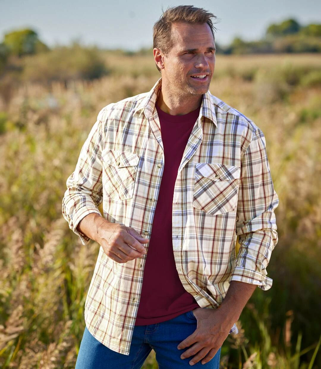 Kariertes Popelinhemd Kootenay: Hier kommt ein unkompliziertes Hemd für die entspannten Momente. Genießen Sie den weichen Popelin (ca. 110 g/m²) mit Webkaros in beigen Naturtönen. Lässiger Look dank 2 Brusttaschen mit Knopfklappen. Einwandfreie Verarbeitung: Kentkragen und Knopfmanschetten, Rückenpasse mit 2 Bewegungsfalten, abgerundeter Saum. Knöpfe in Hornoptik. Rückenlänge bei Größe L: ca. 81 cm. Maschinenwaschbar bei 30°. Farben: Beige mit Karos in Dunkelblau und Bordeaux.